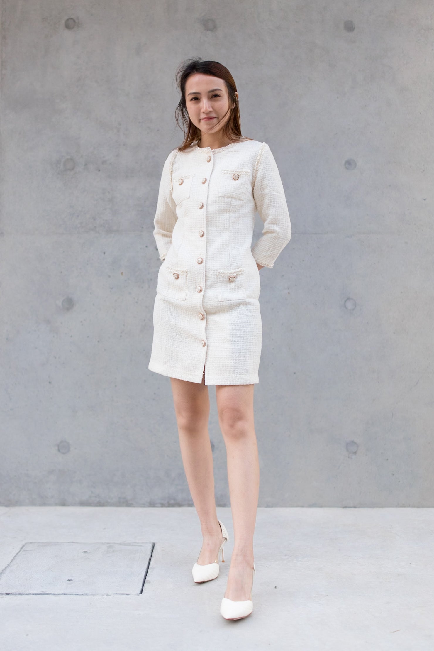 Gemma trimmed white tweed dress