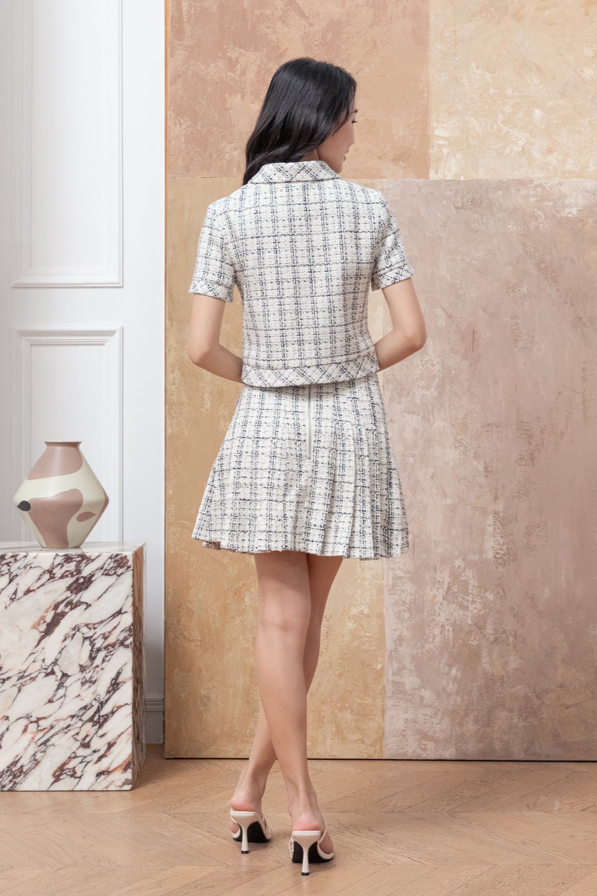 Fallon check pleated tweed skirt