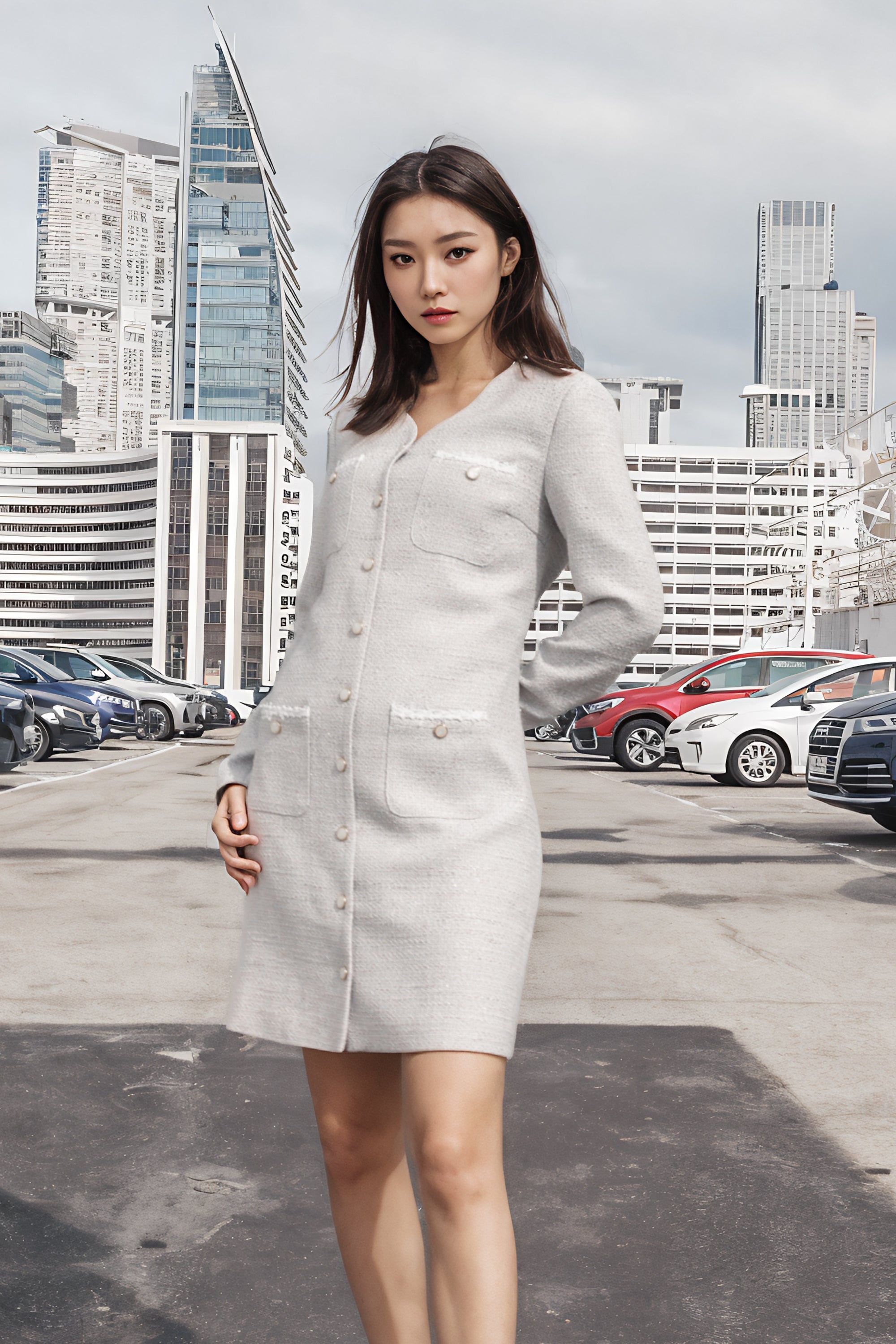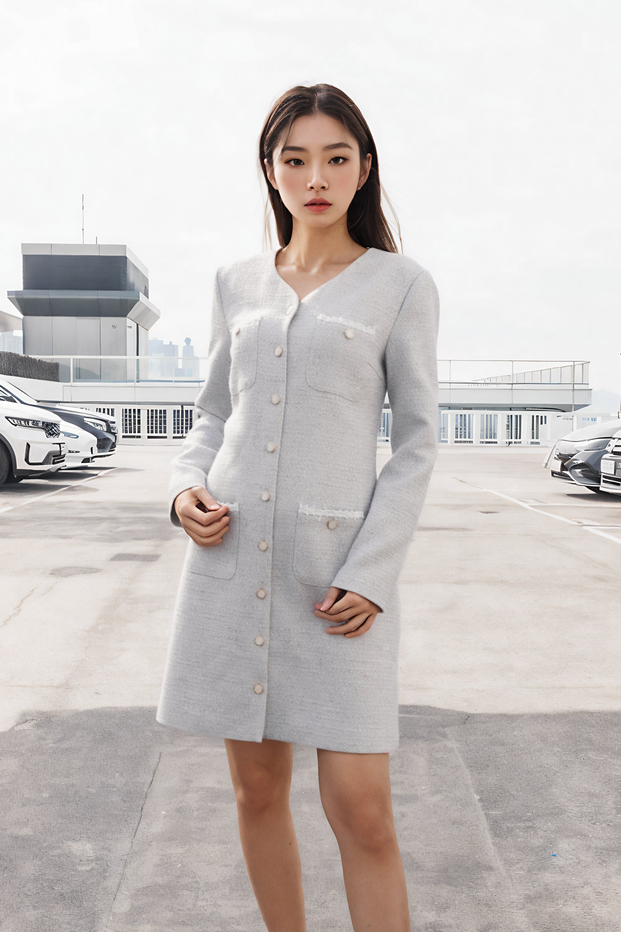 Elena trimmed patched pockets dress