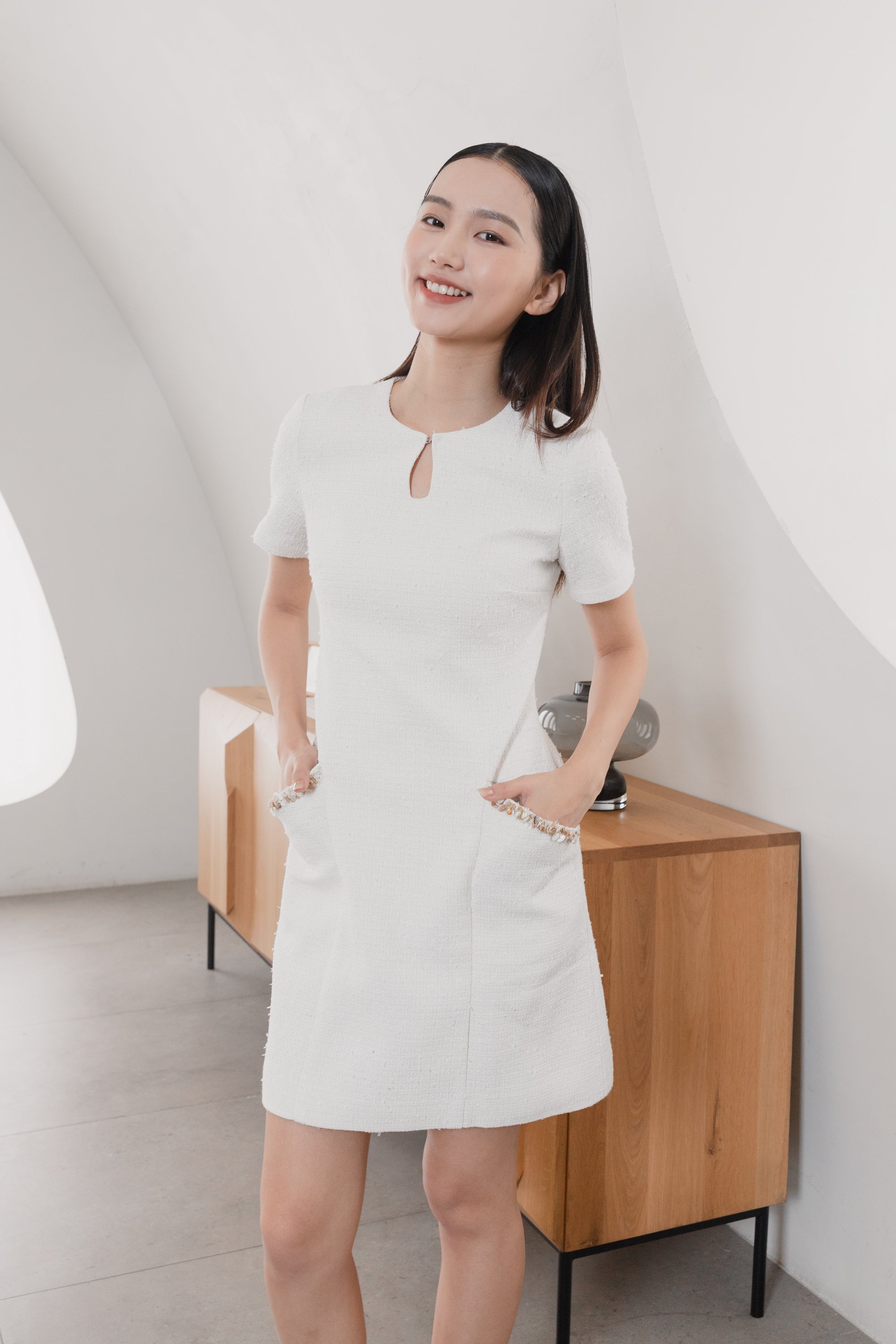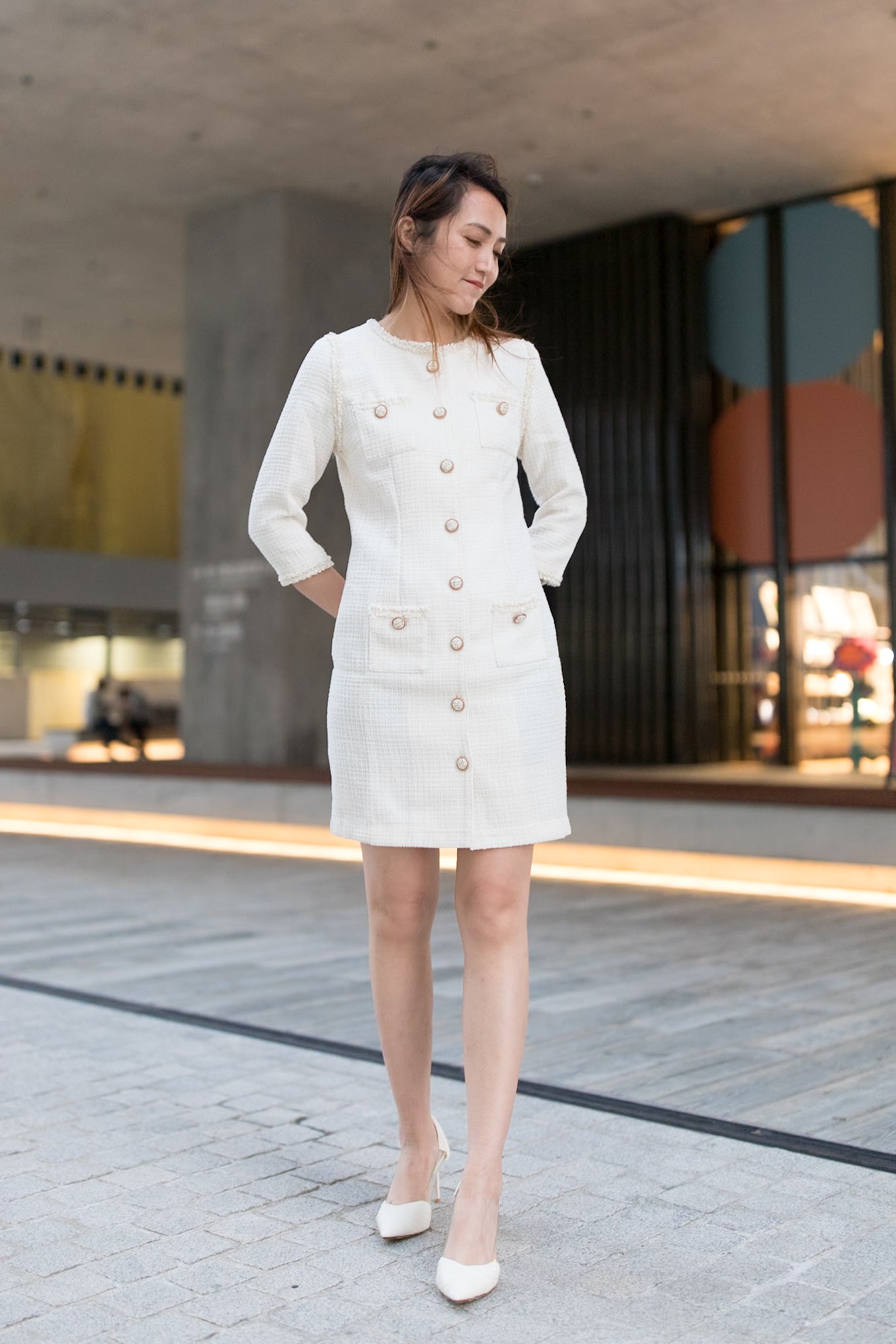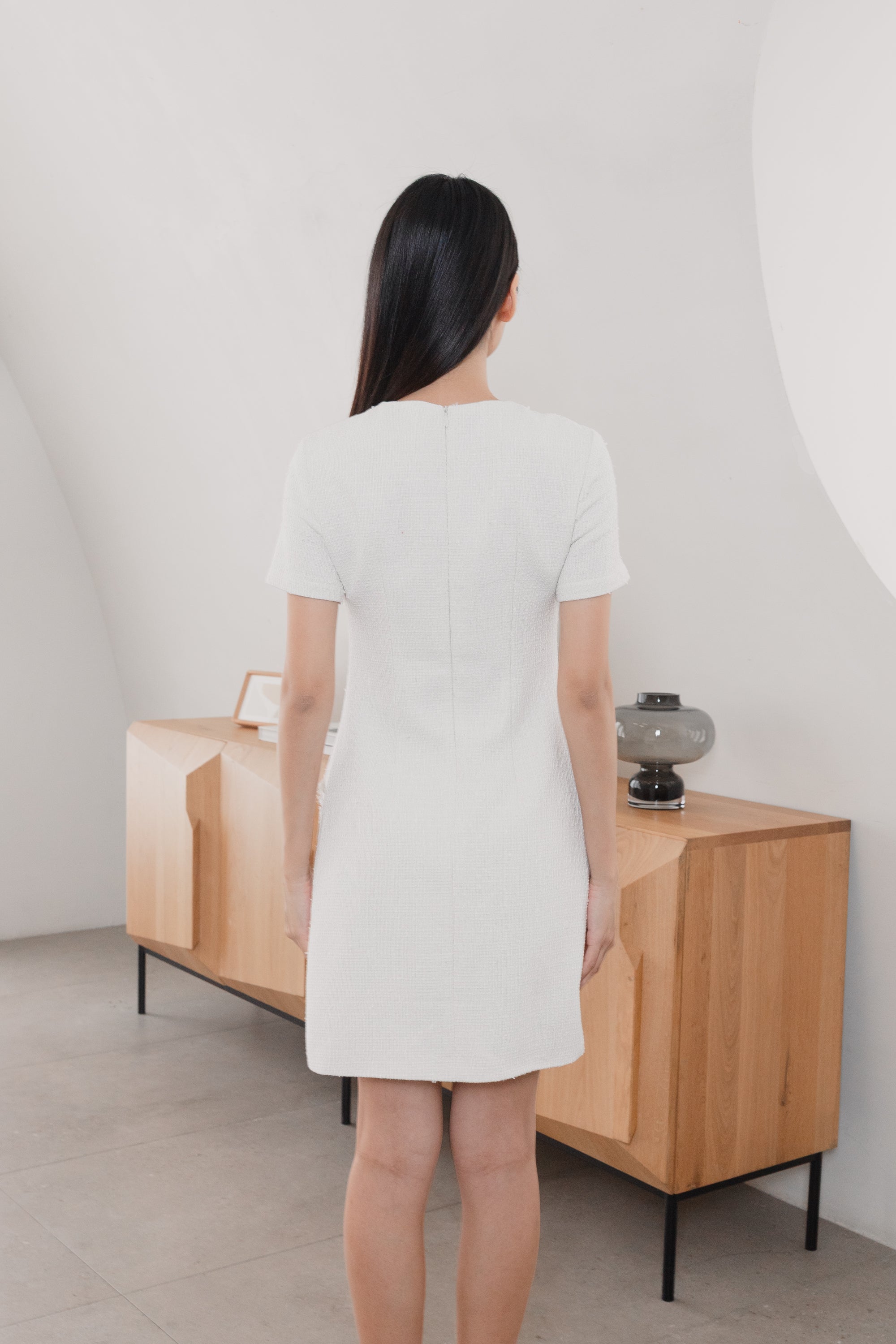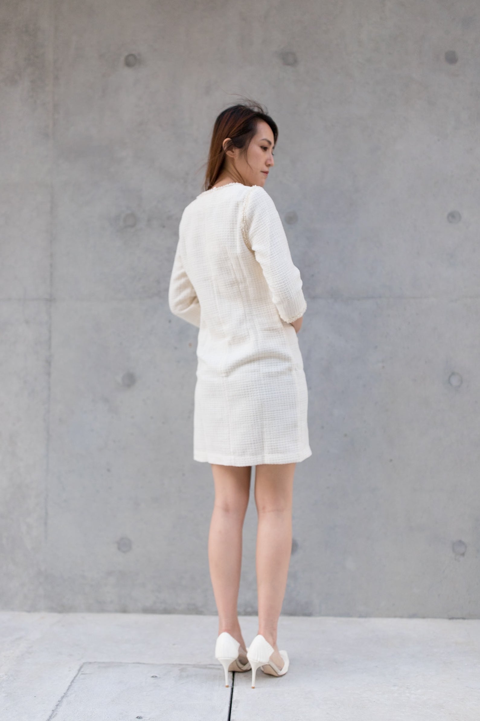 Gemma trimmed white tweed dress