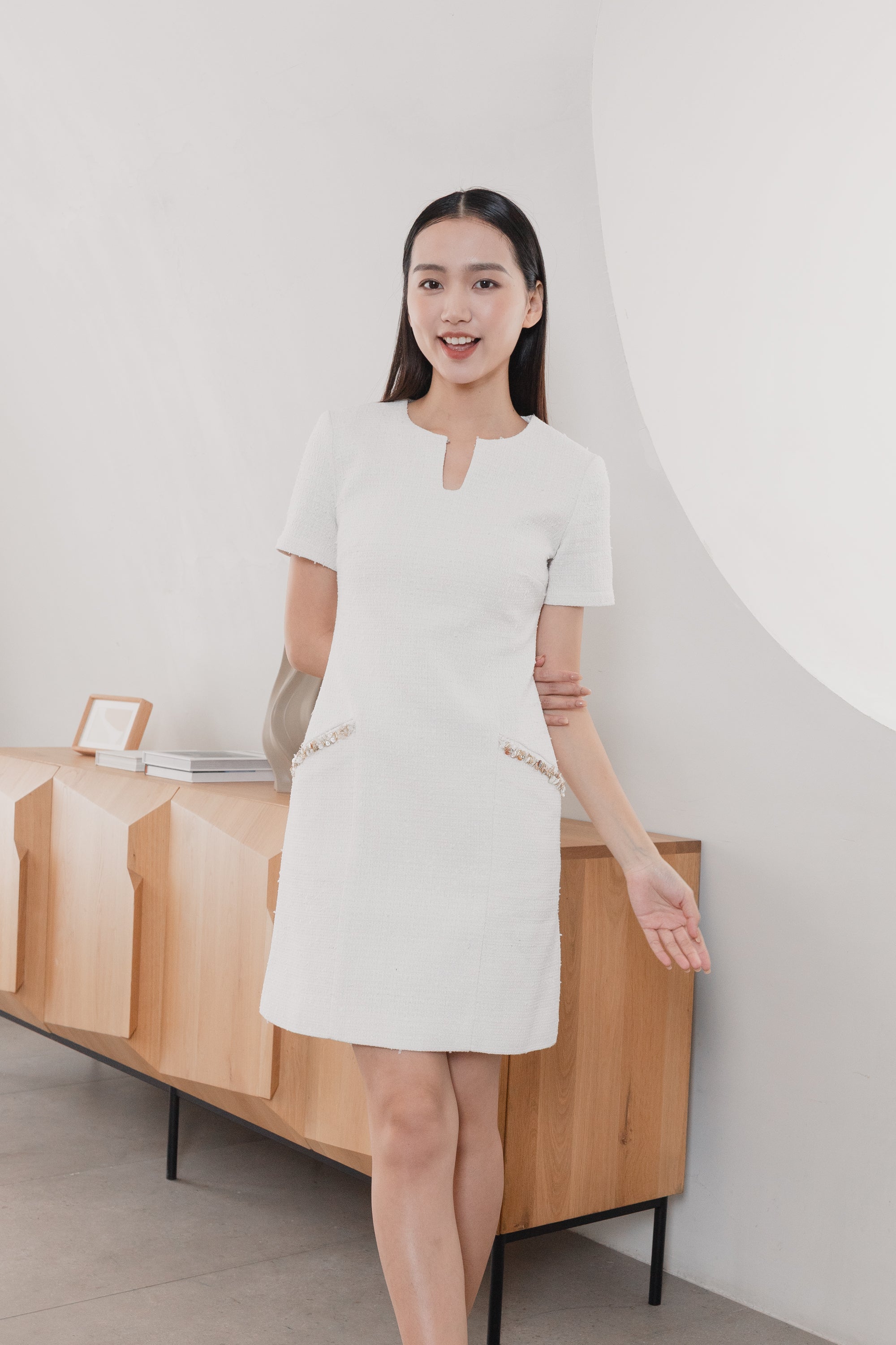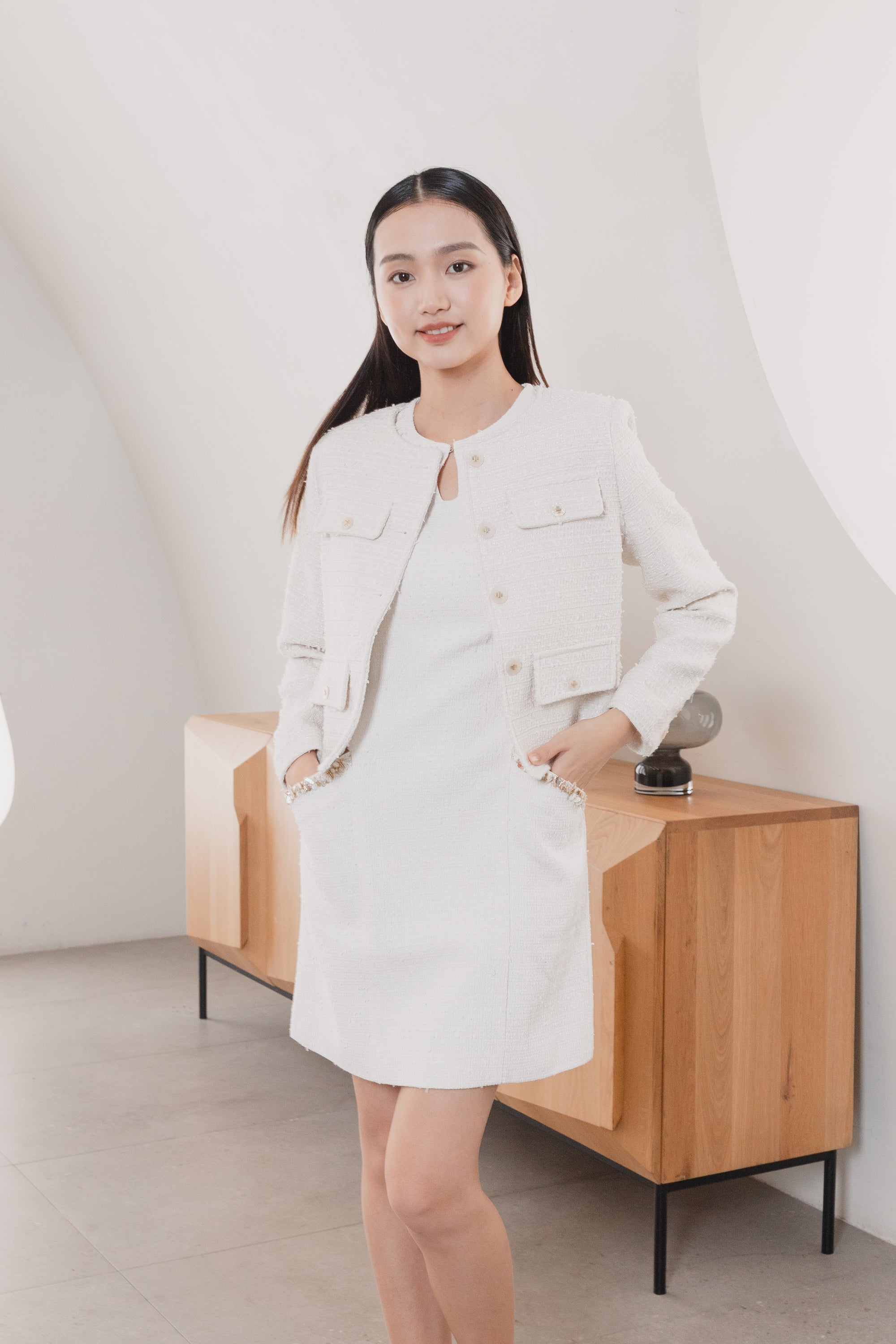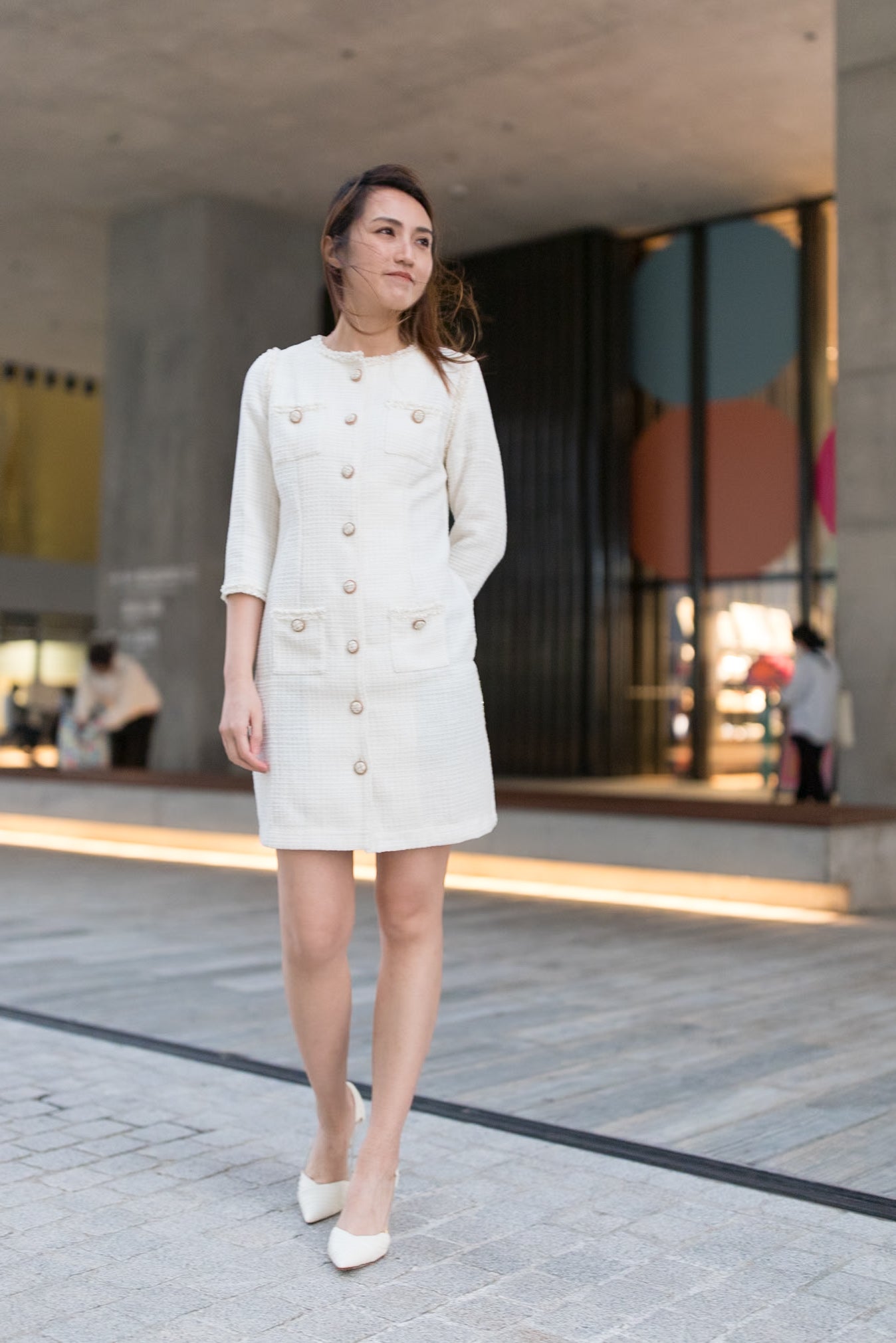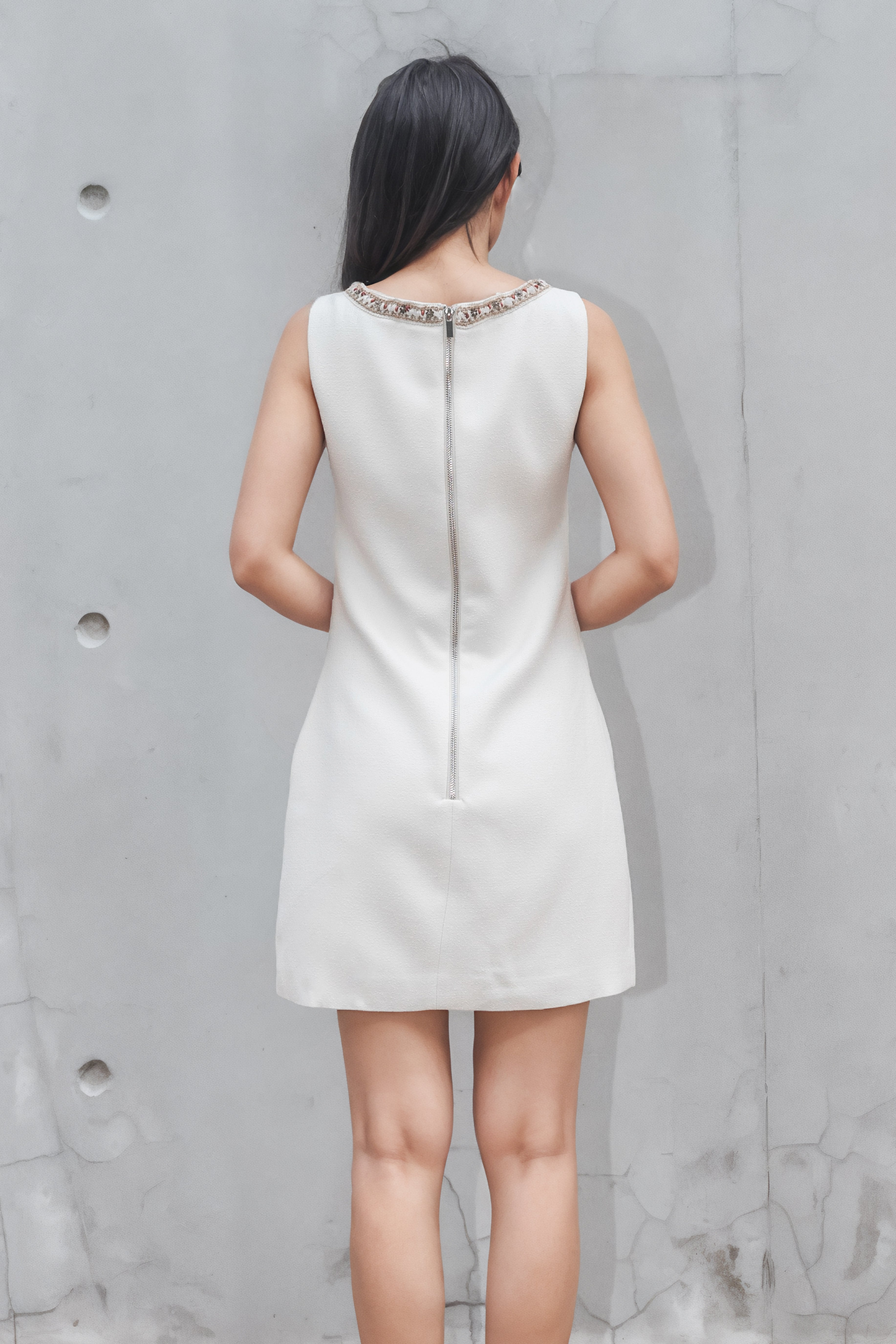 Gemma trimmed white tweed dress
