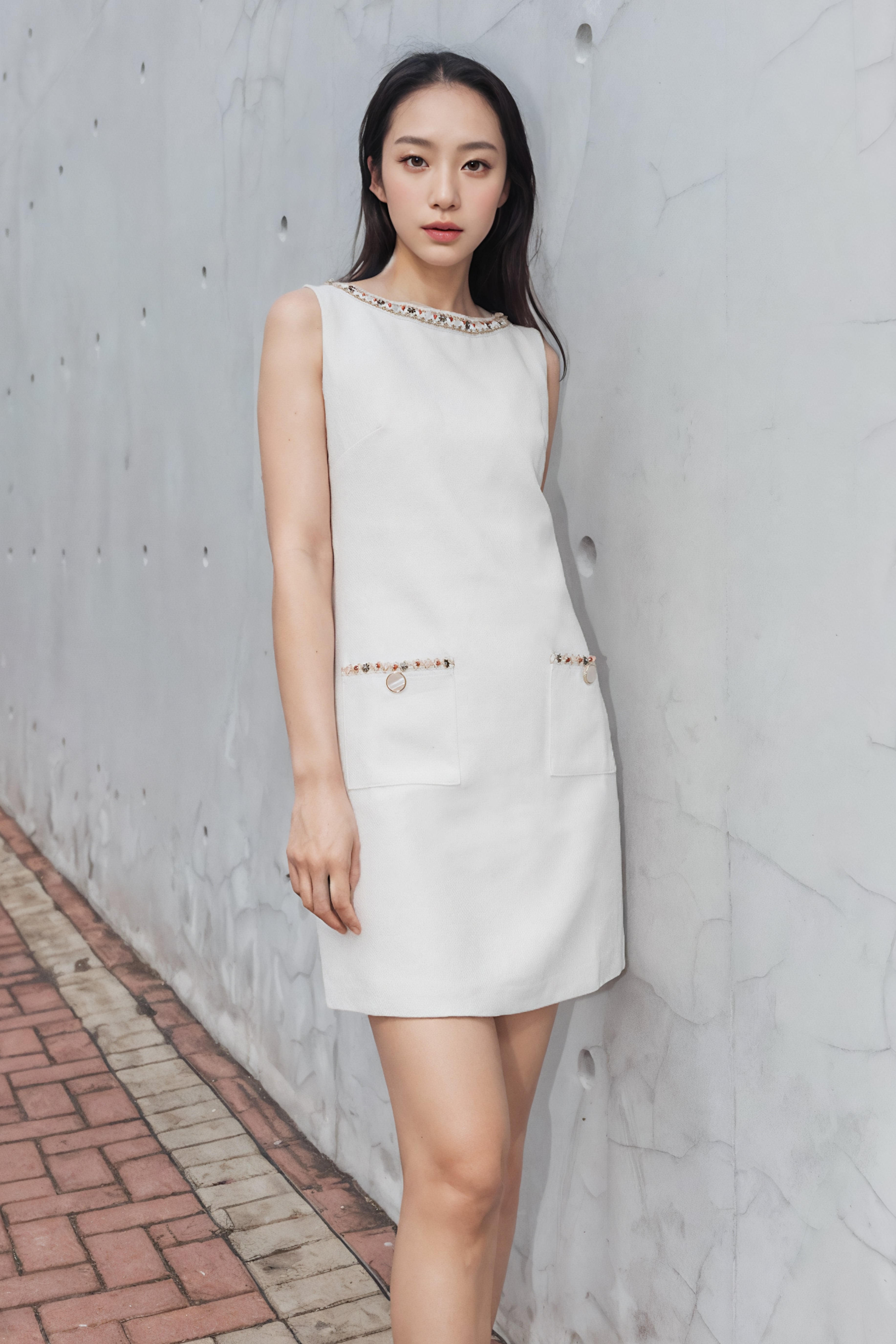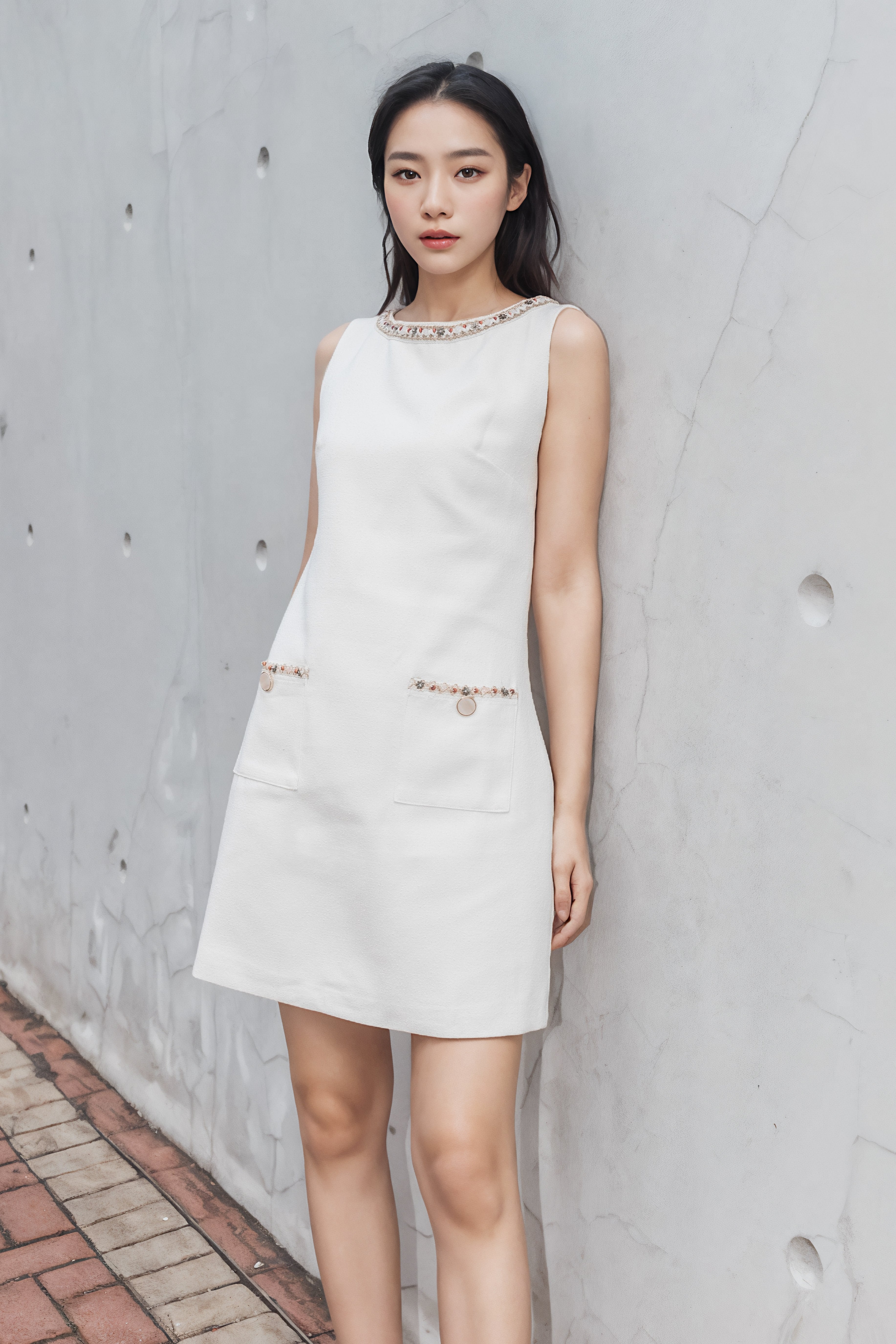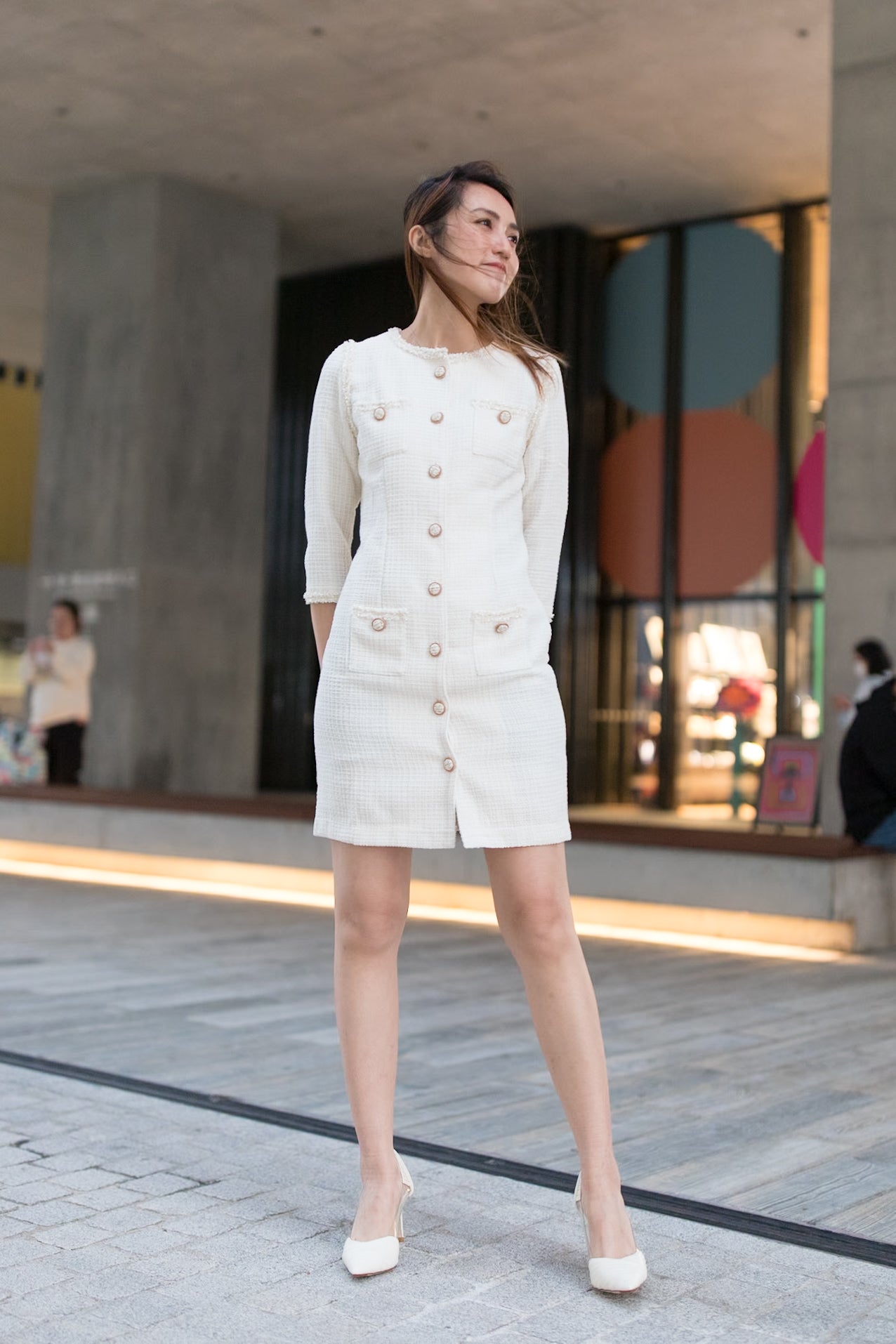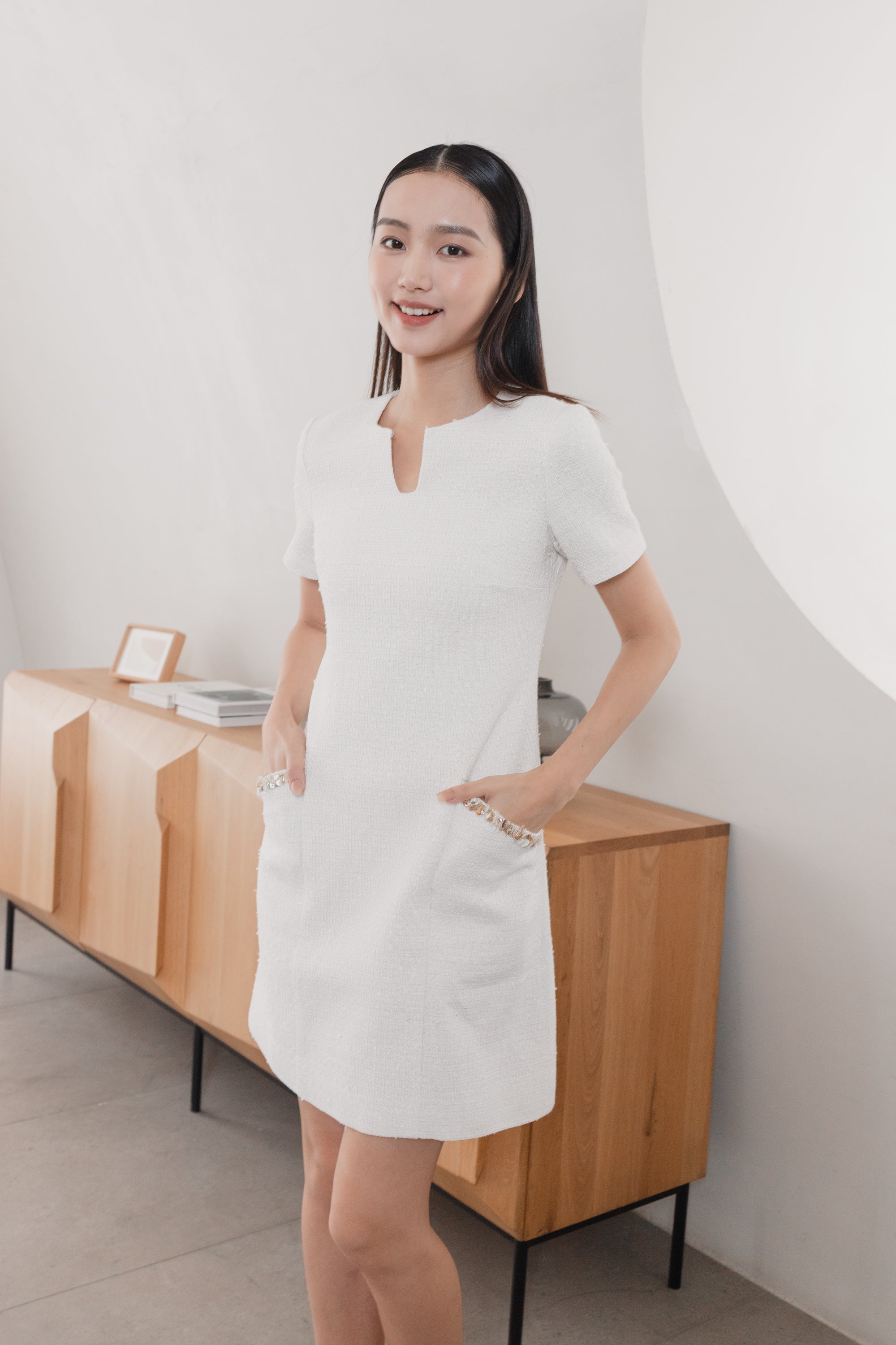 Gemma trimmed white tweed dress