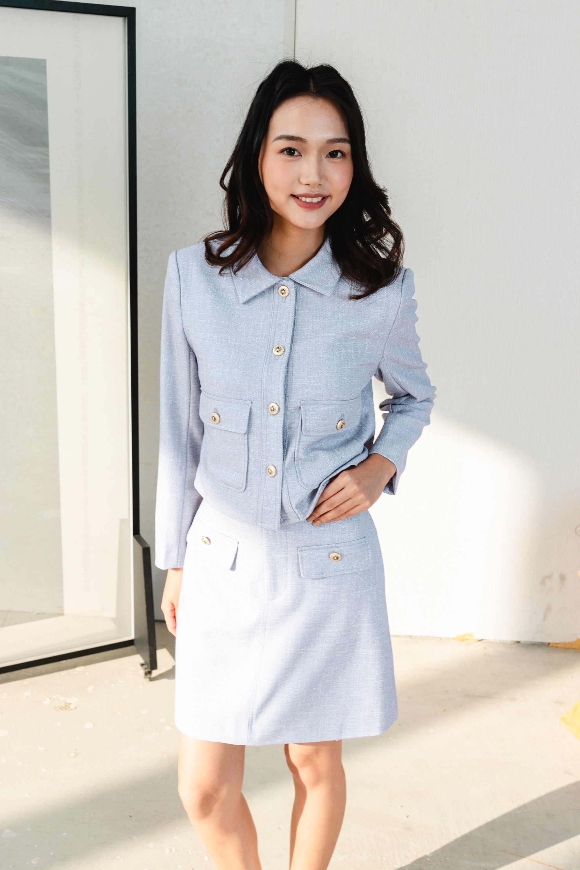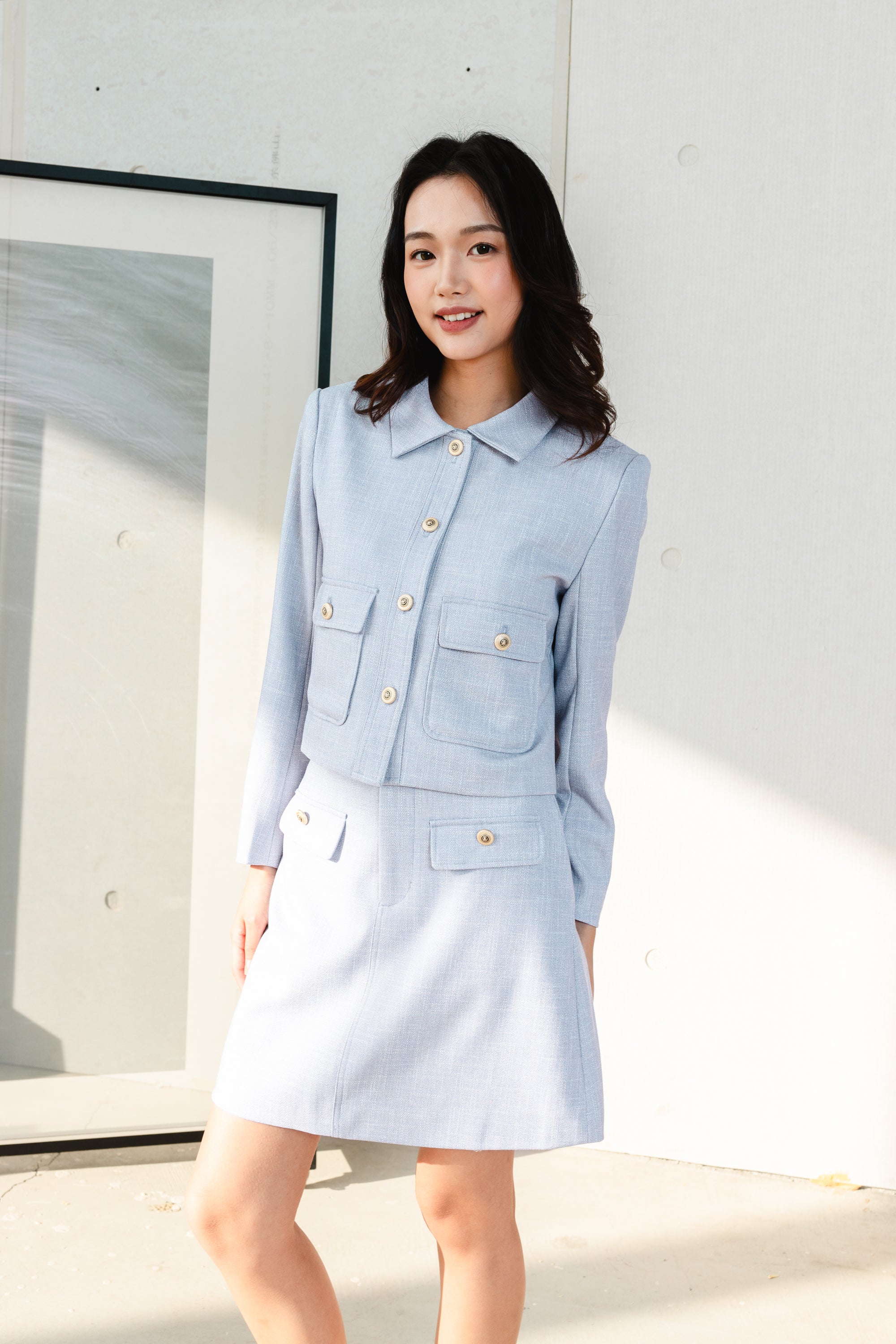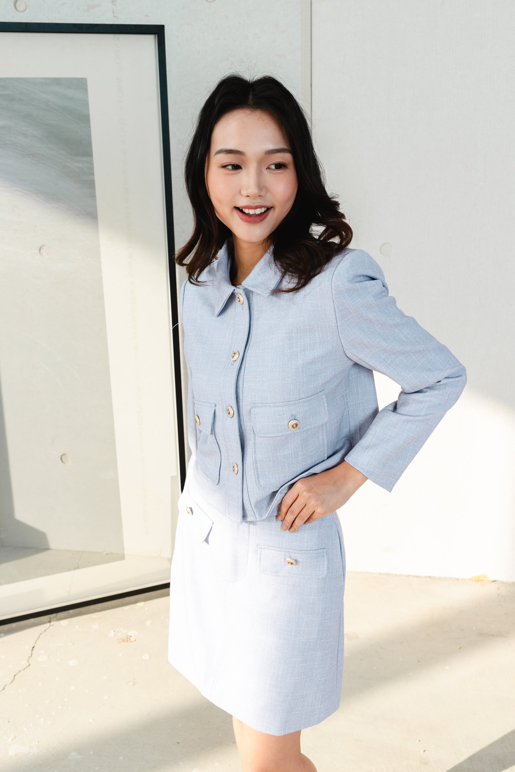 Fallon blue cropped tweed jackets