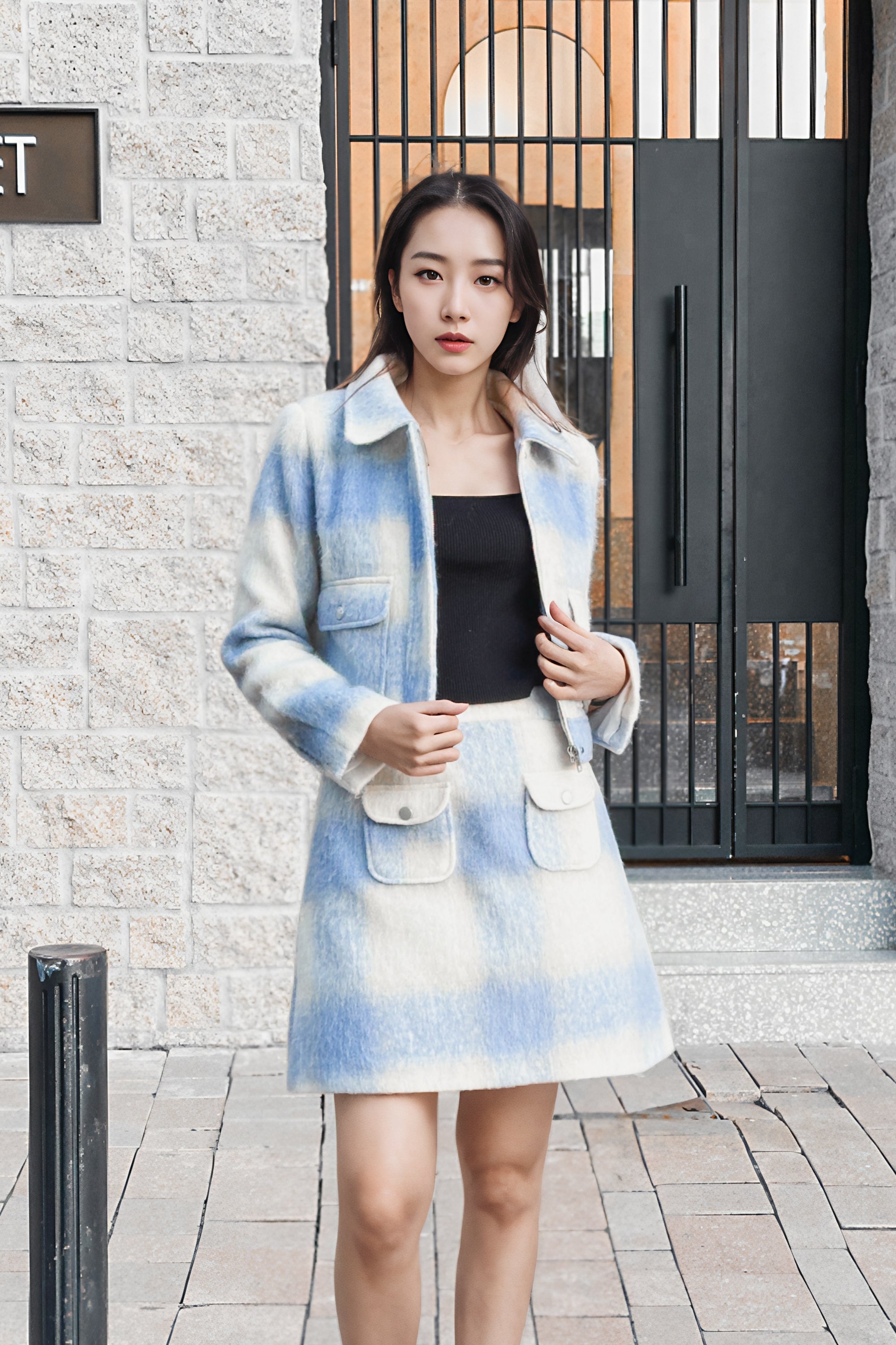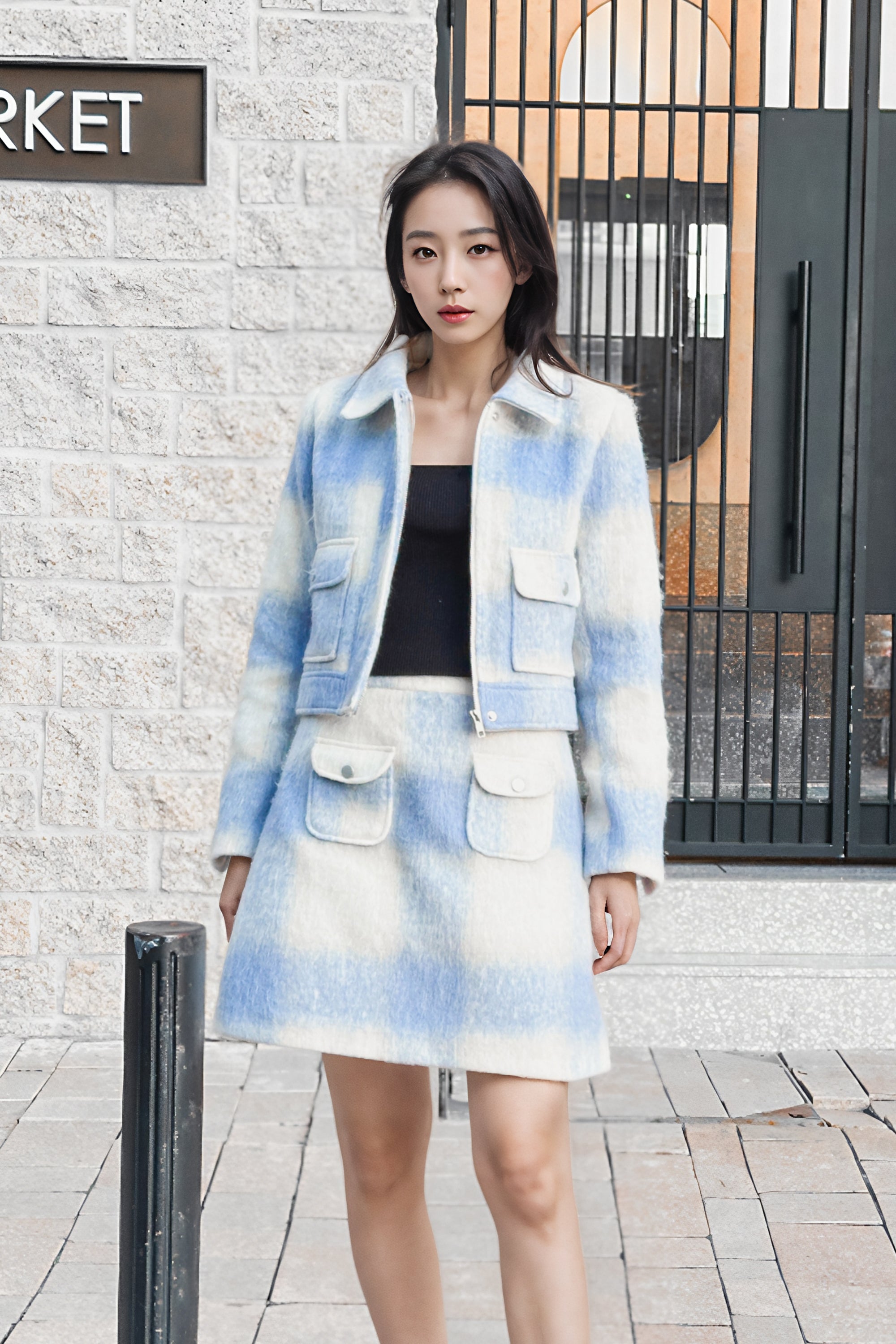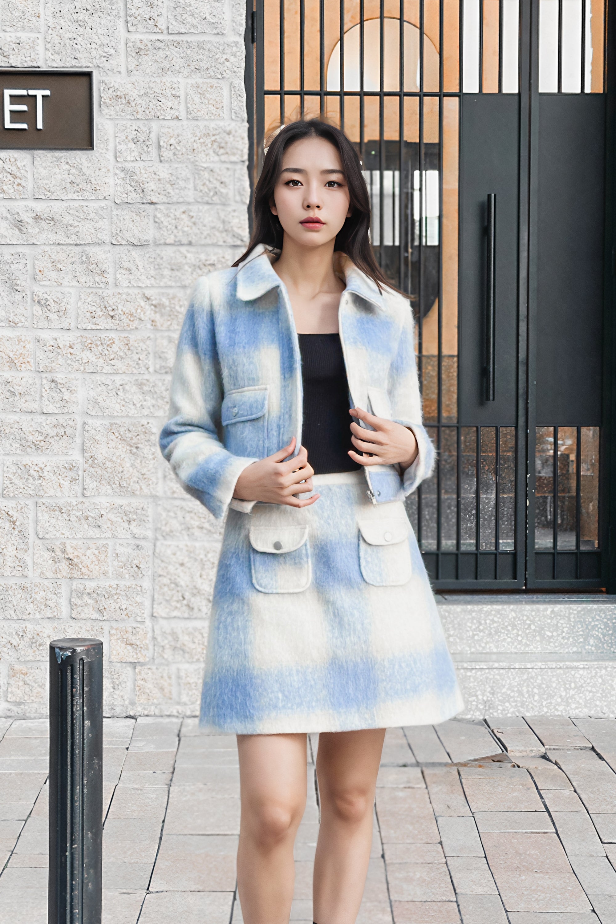 Fallon blue cropped tweed jackets