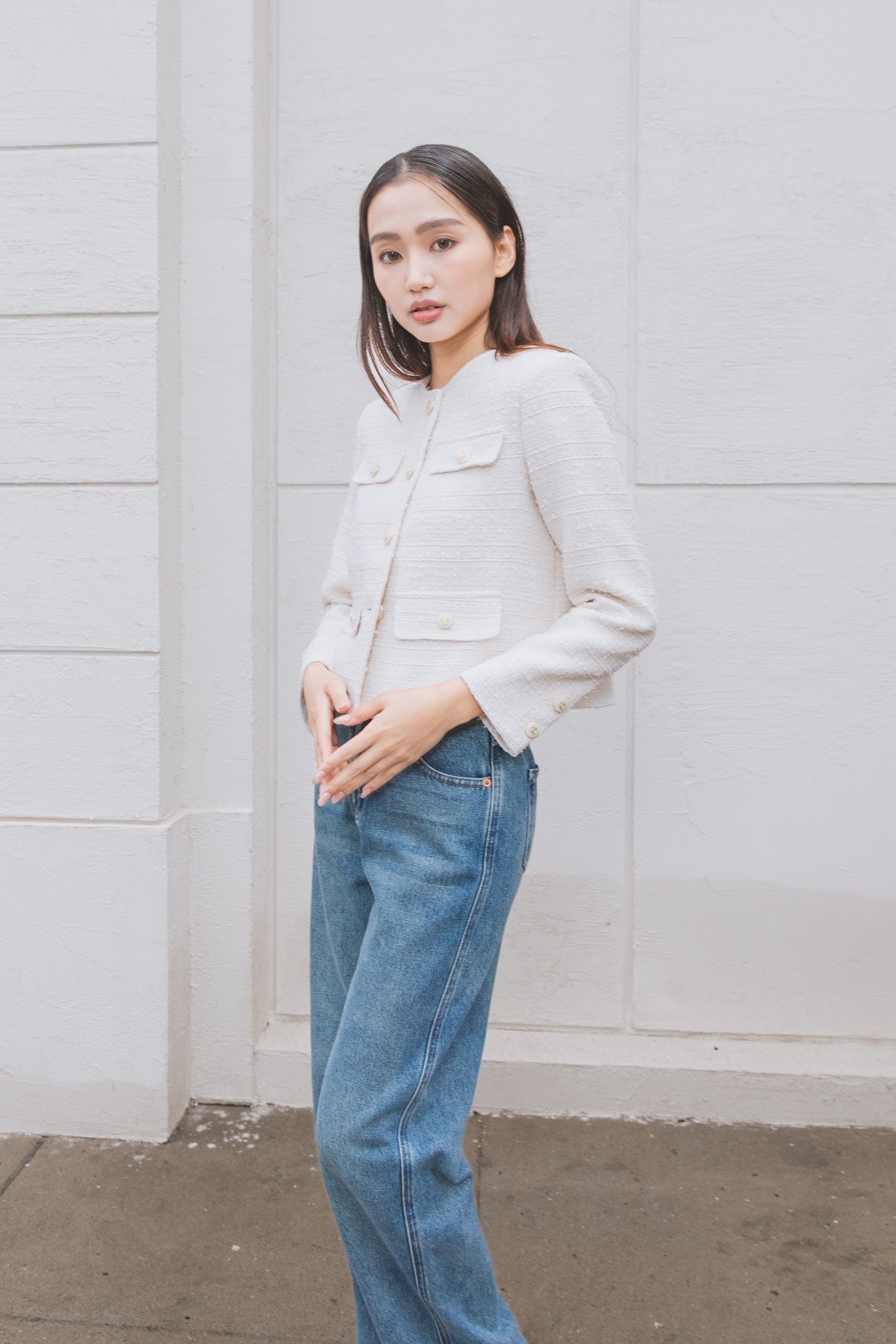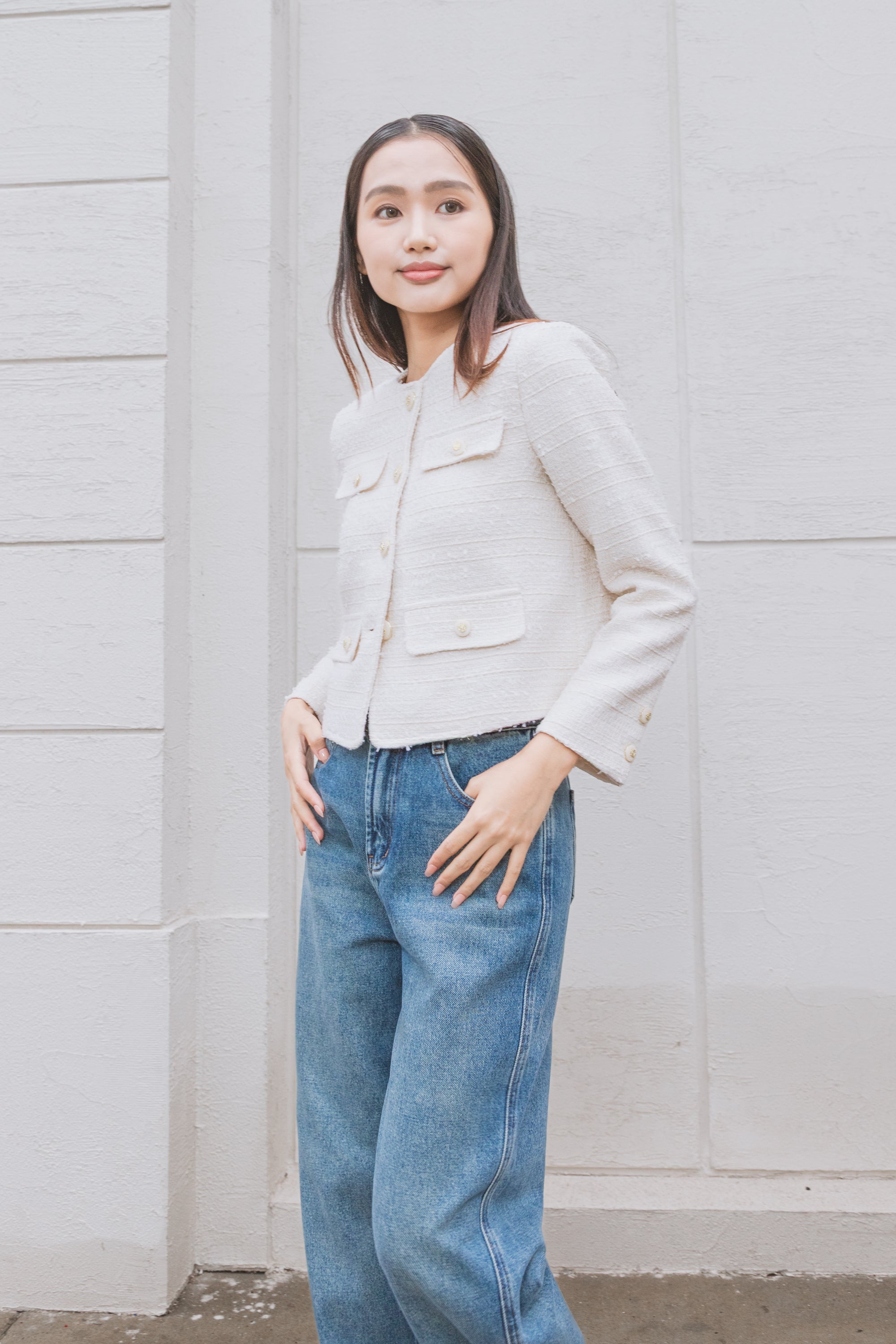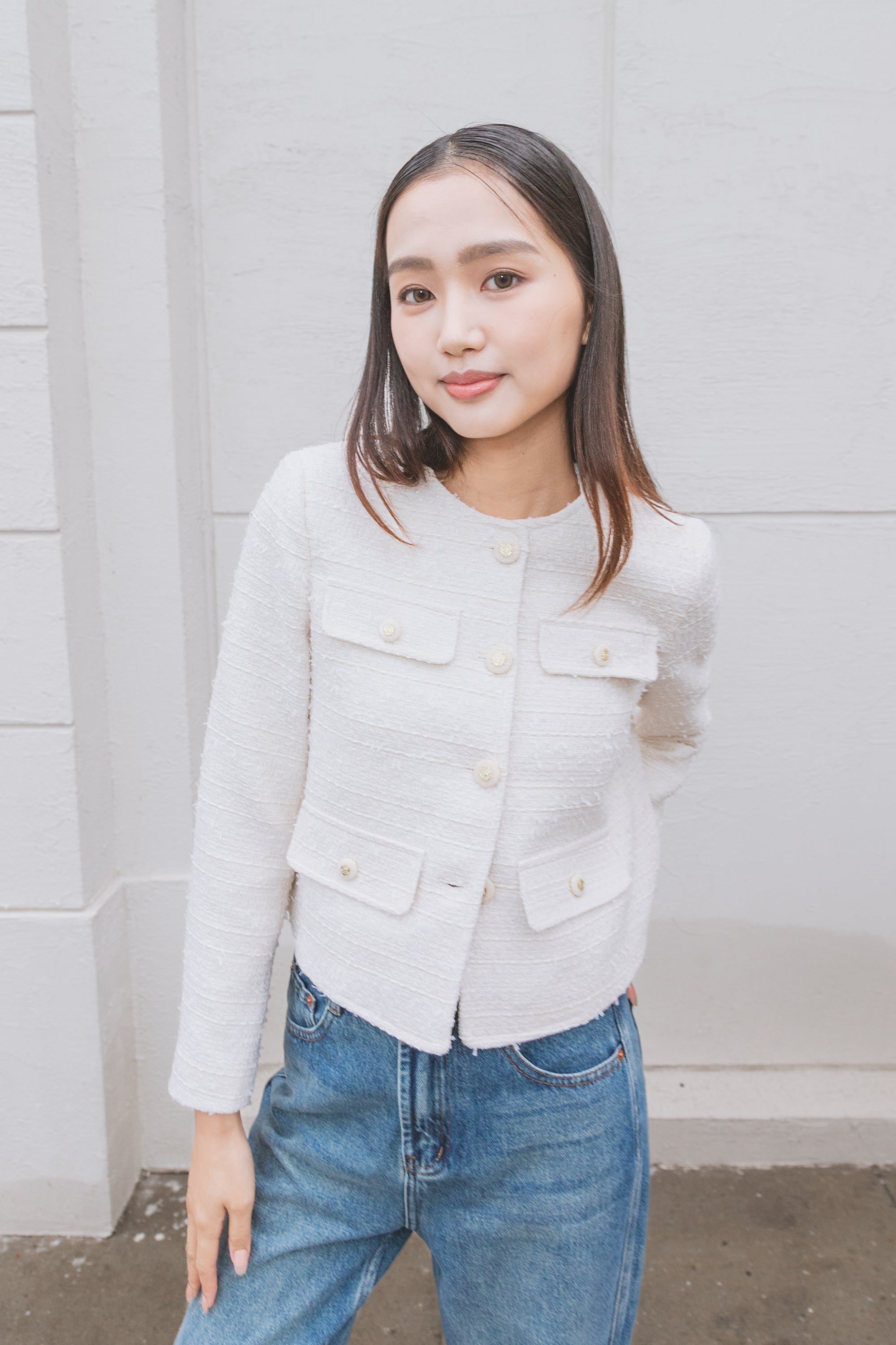 Aashi white tweed jacket
