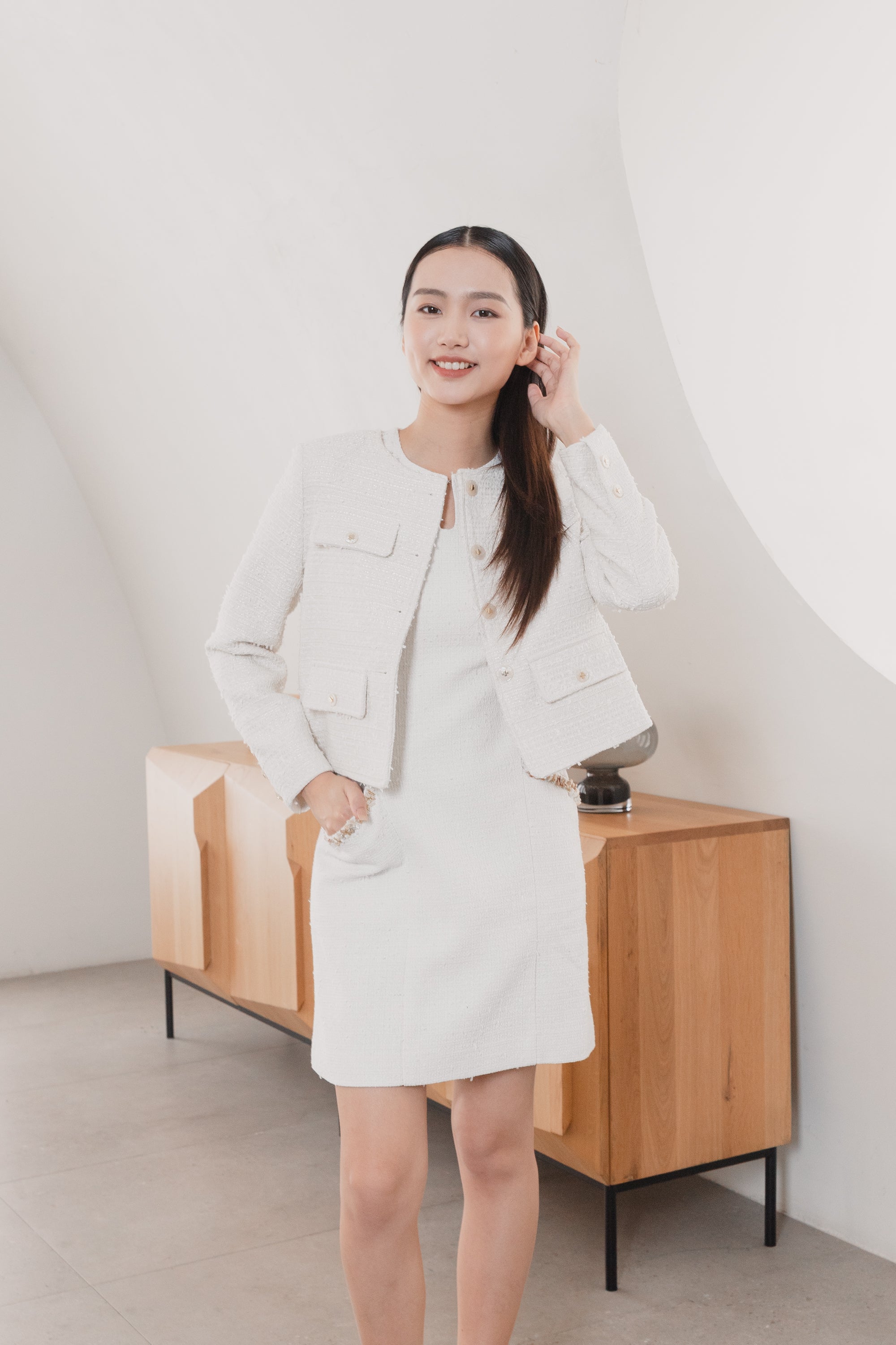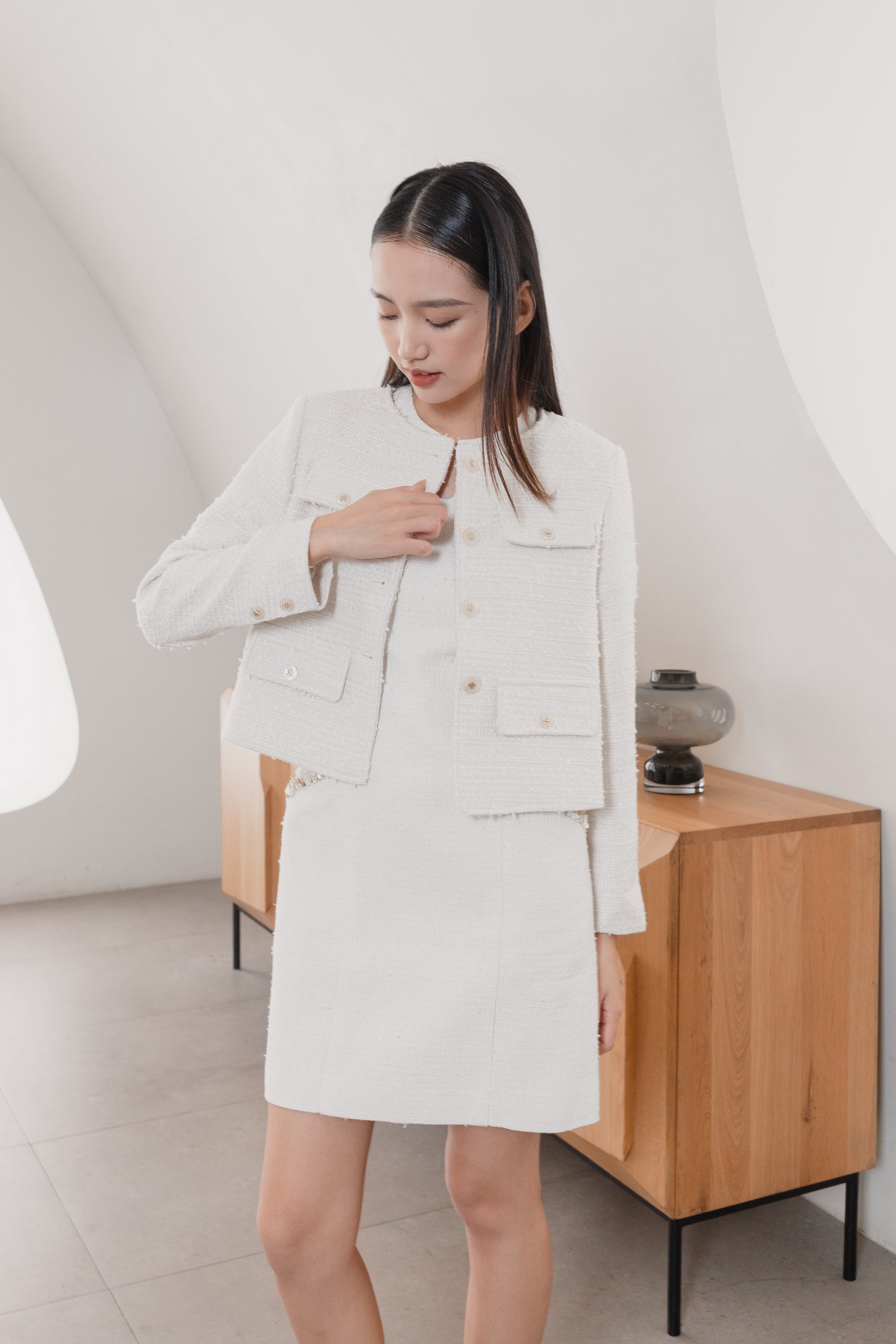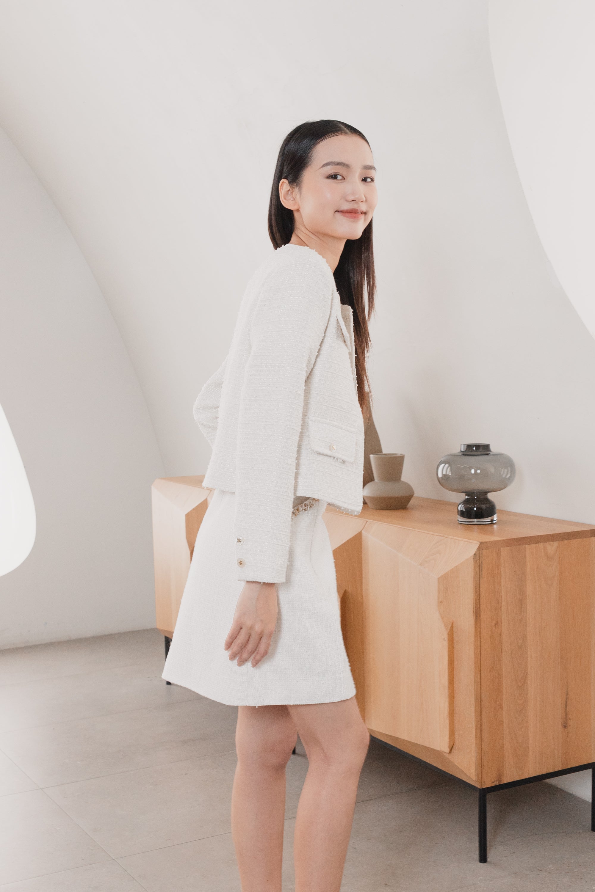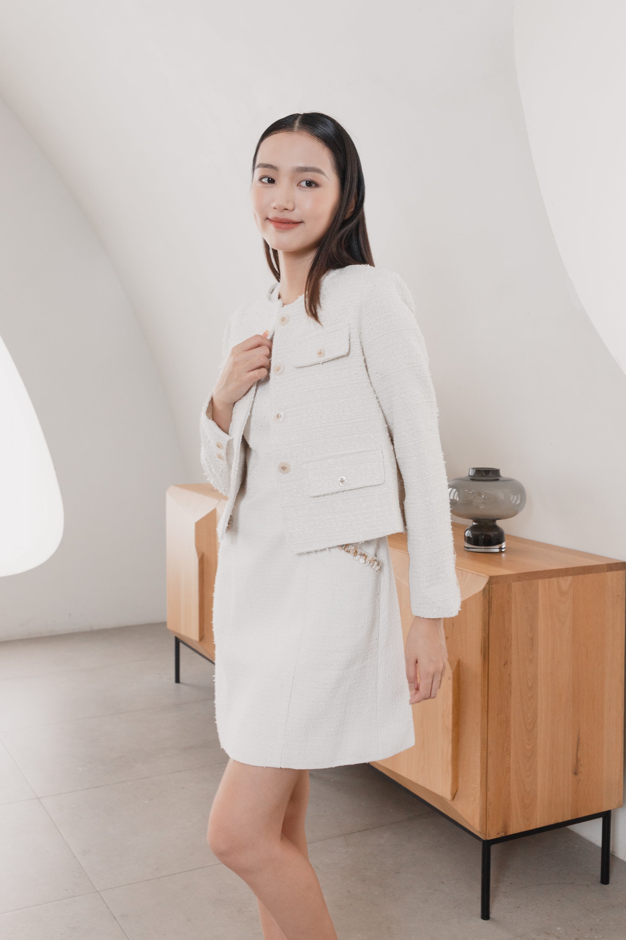 Aashi white tweed jacket