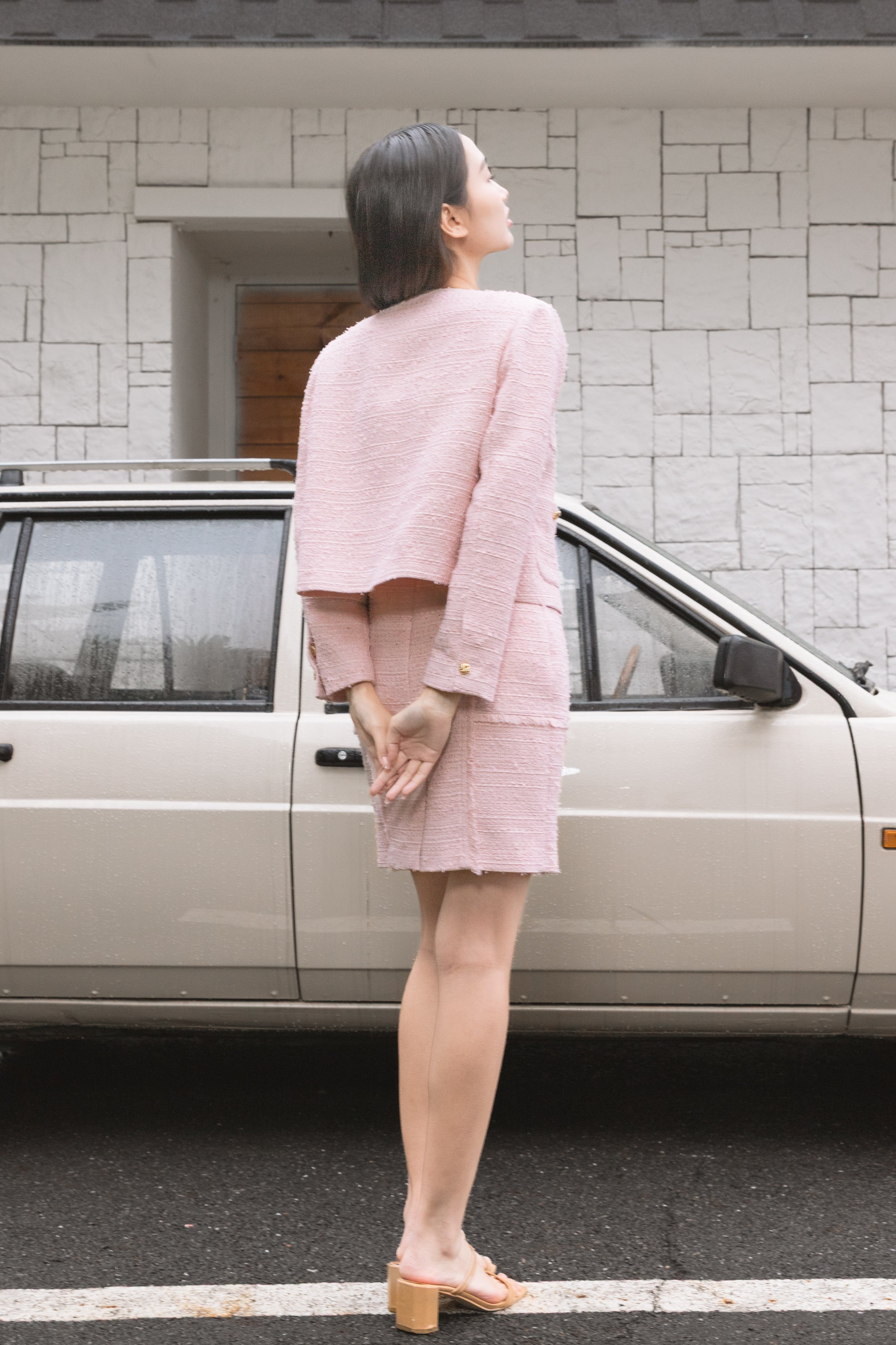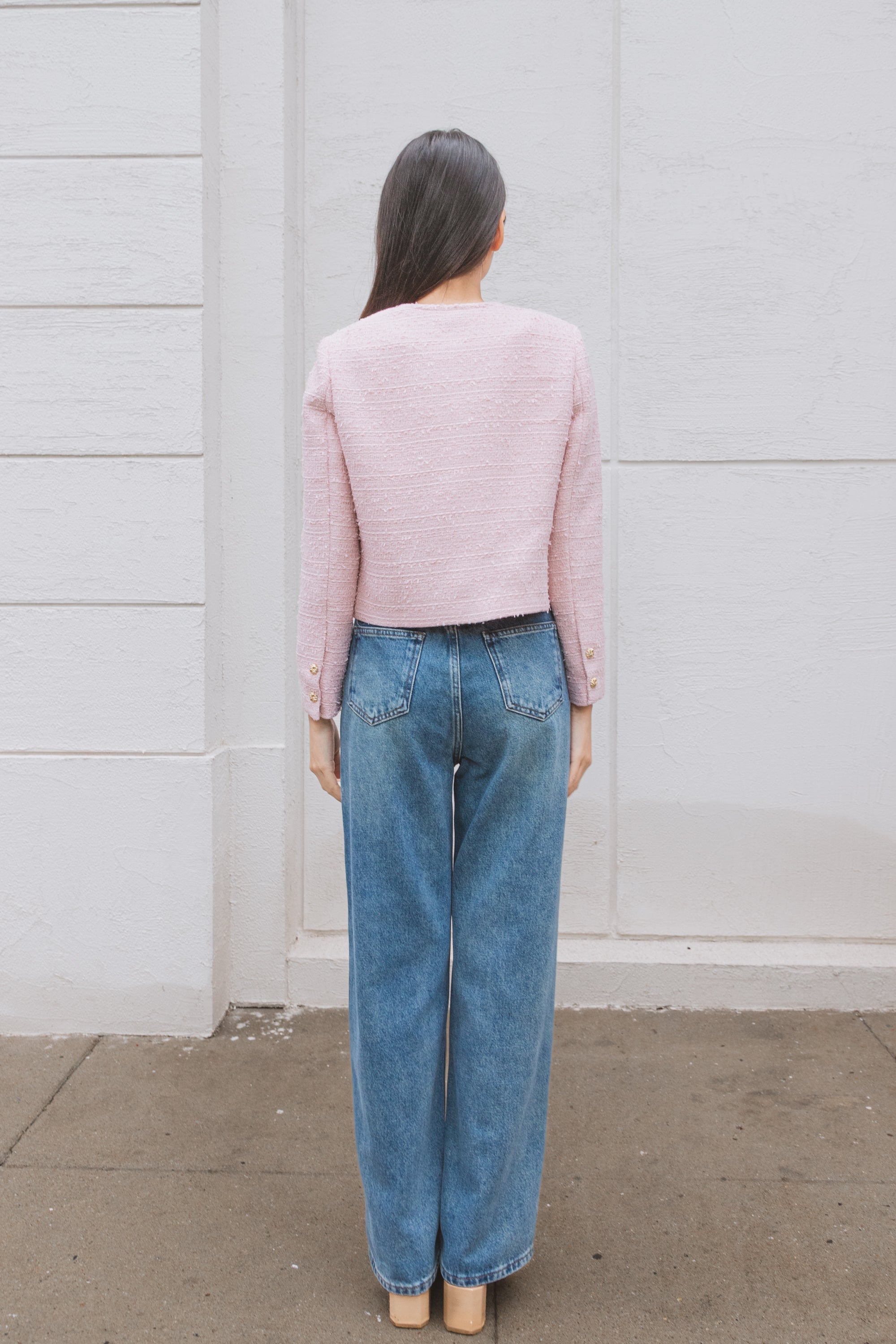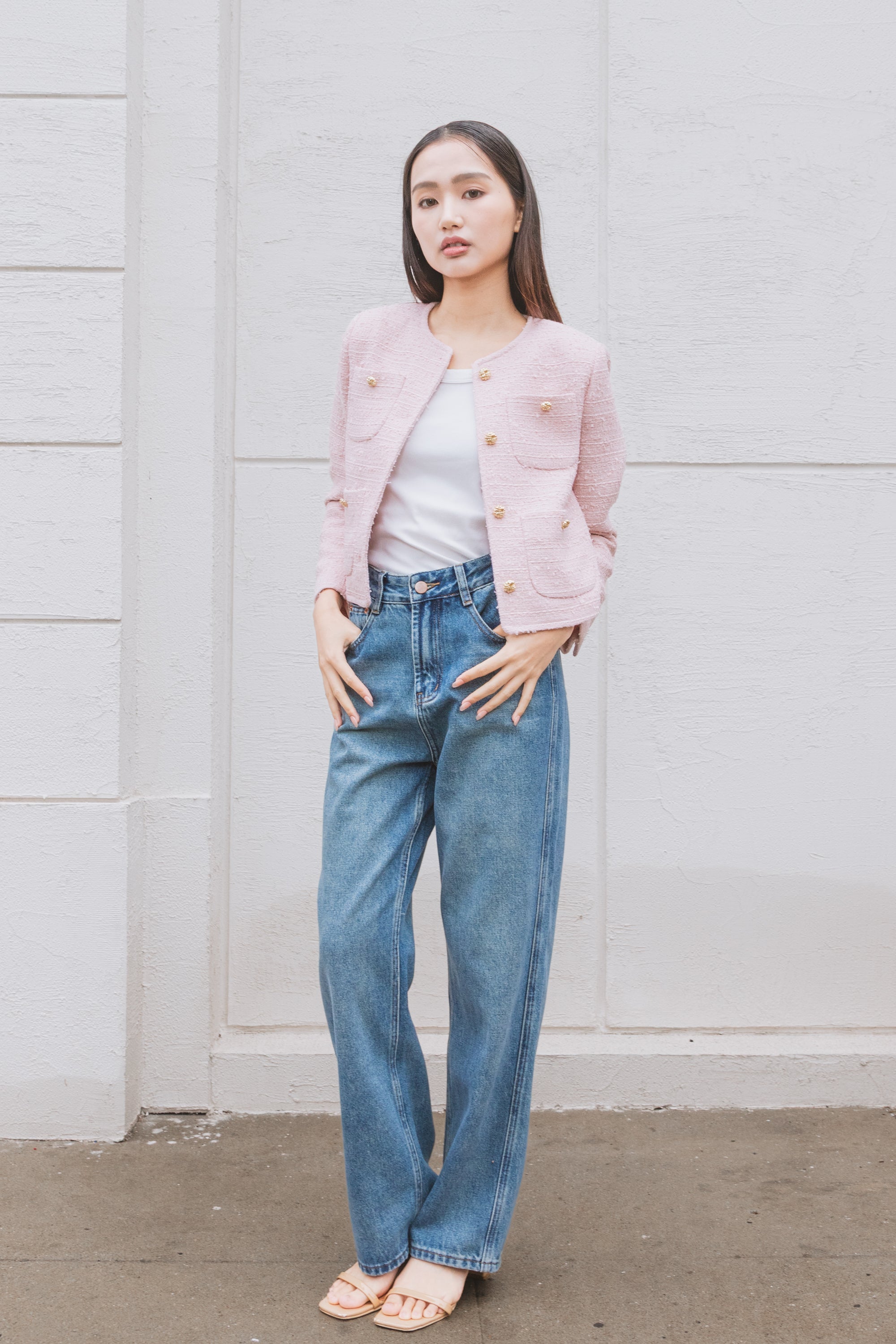 Aashi pink patched pockets tweed jacket