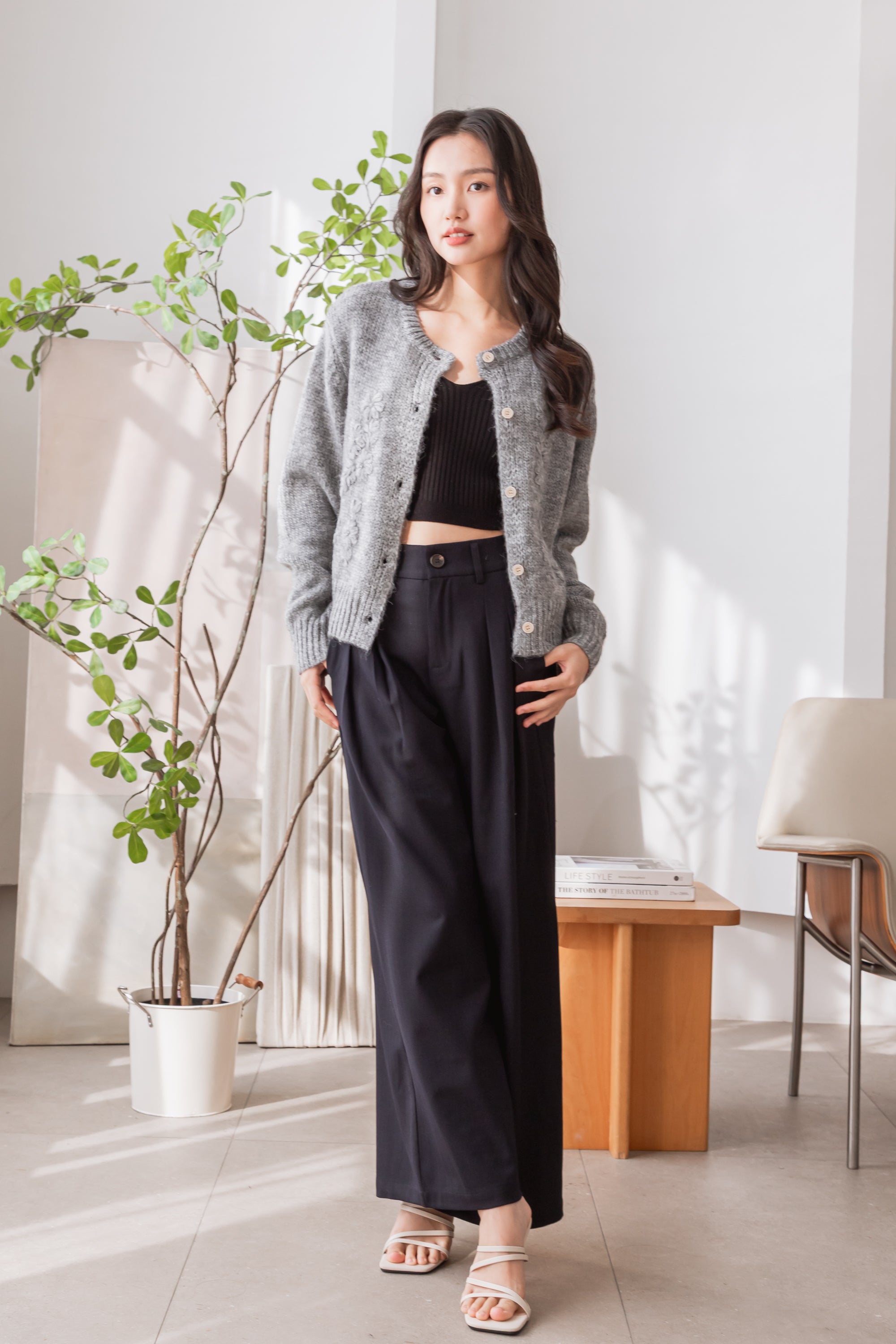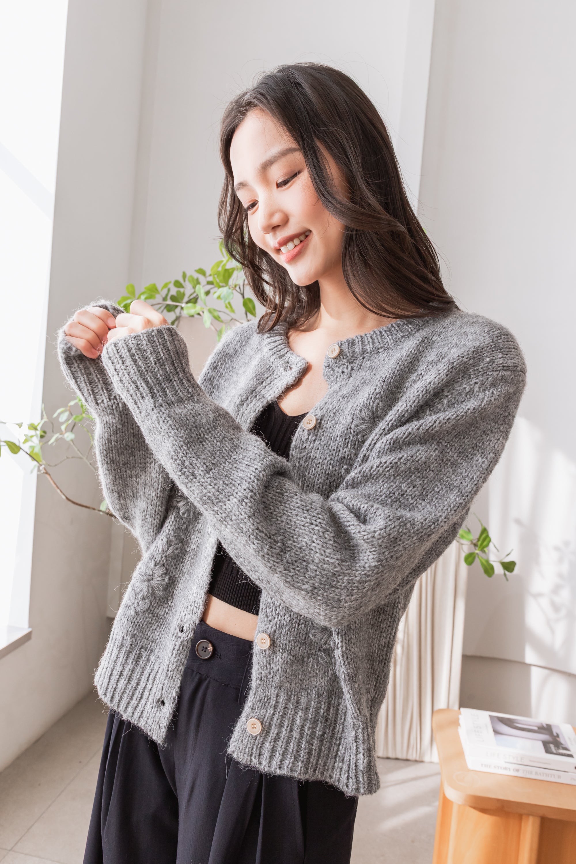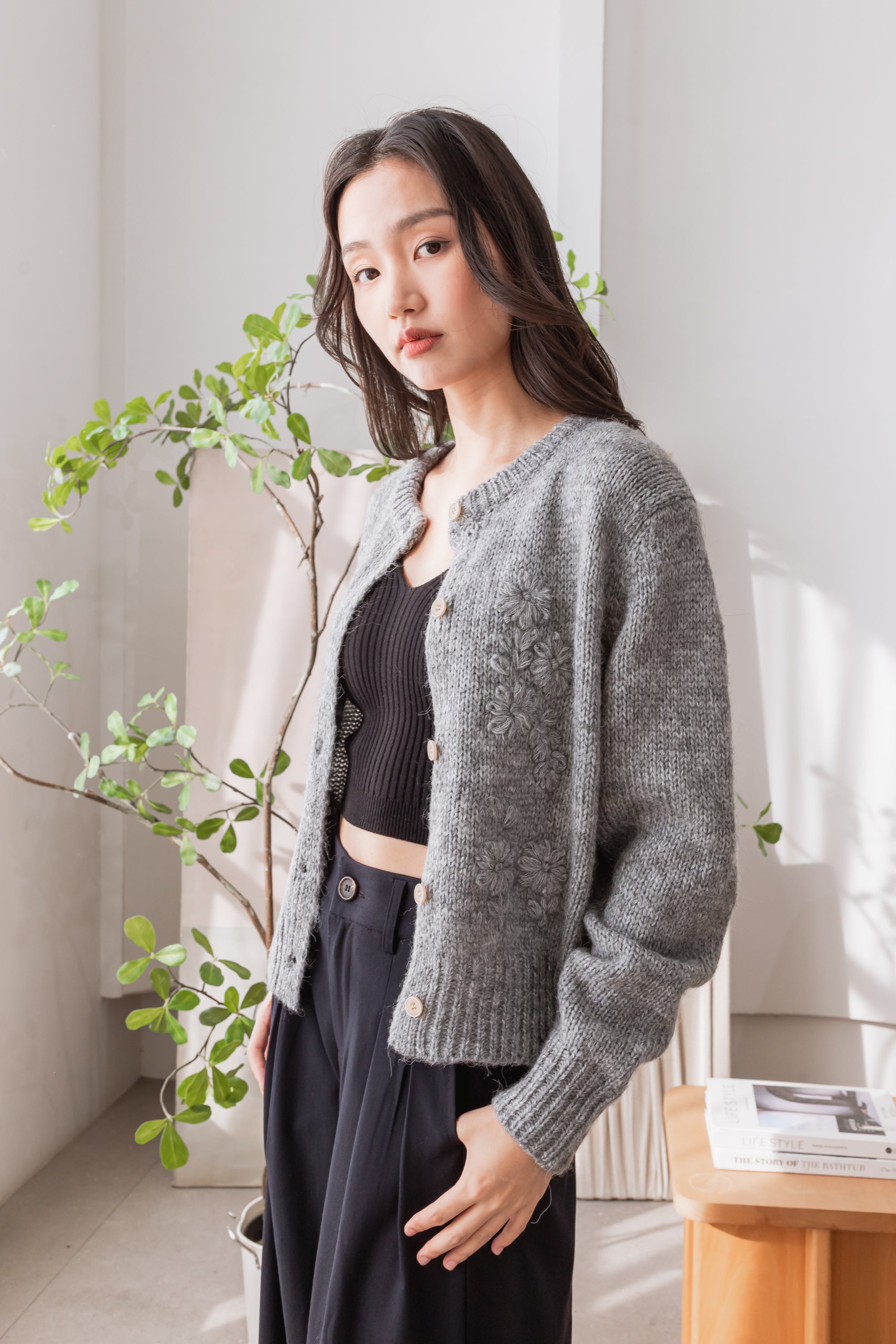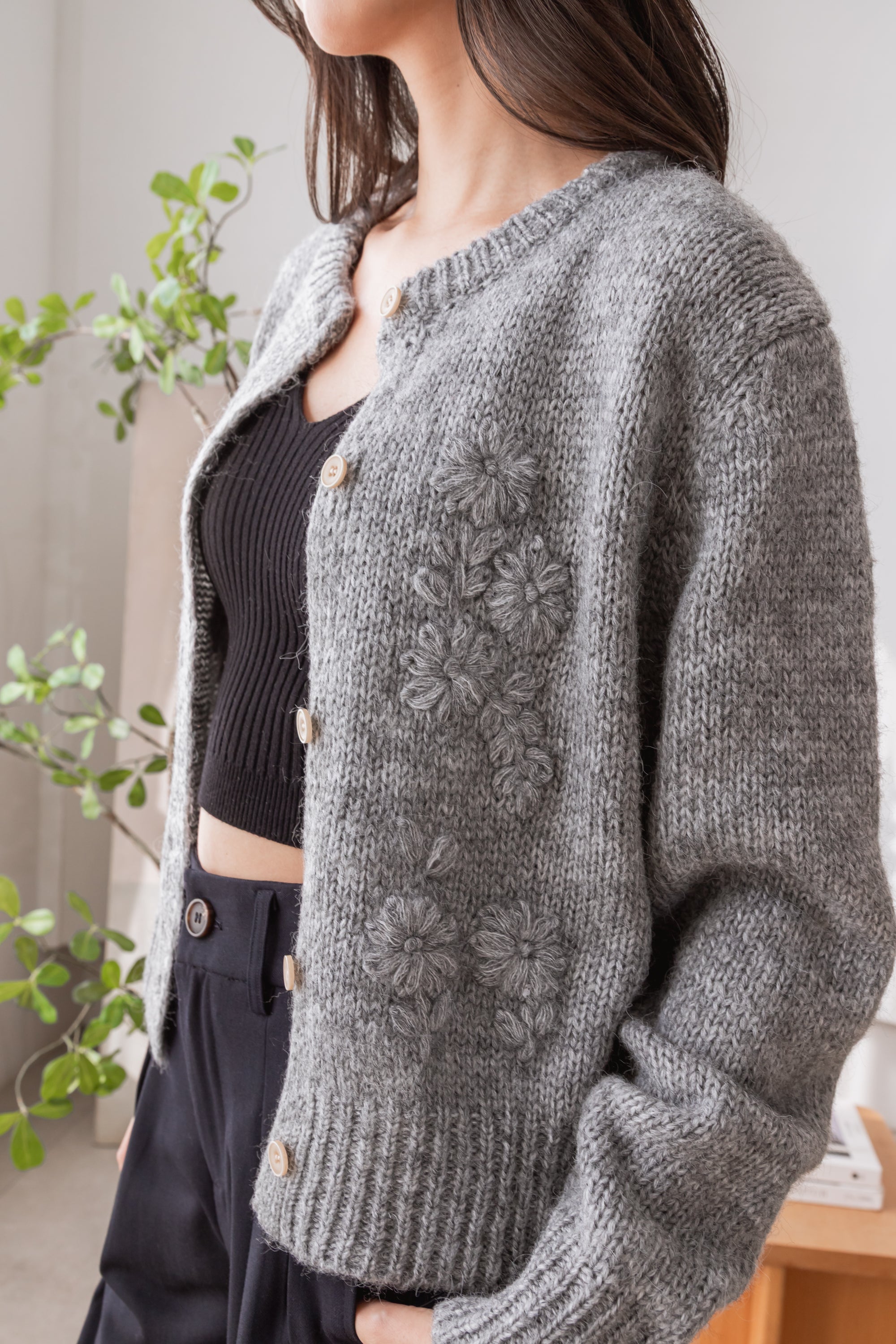 Fallon floral wool grey cardigan