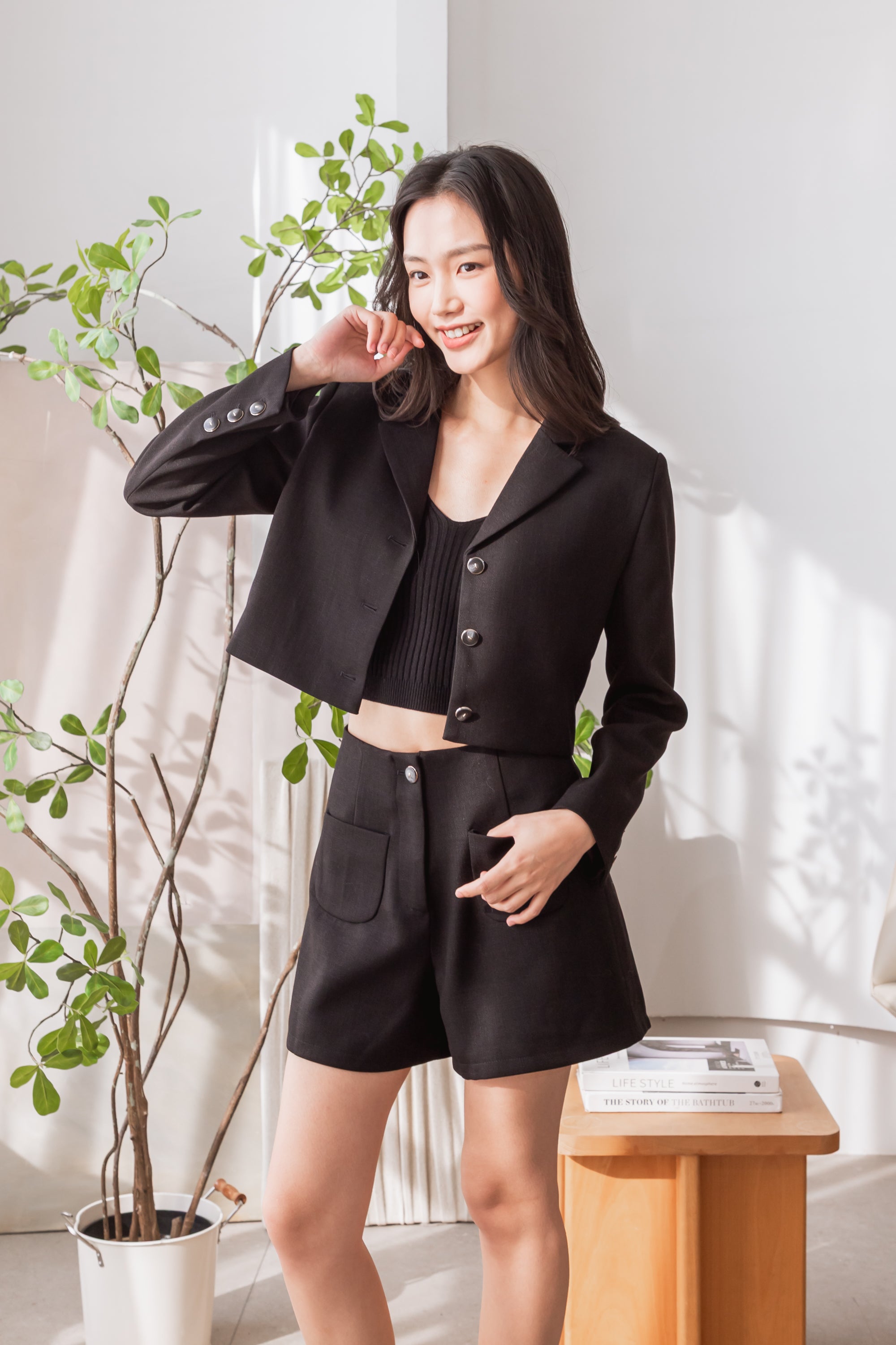 Gavin black cropped blazer jacket