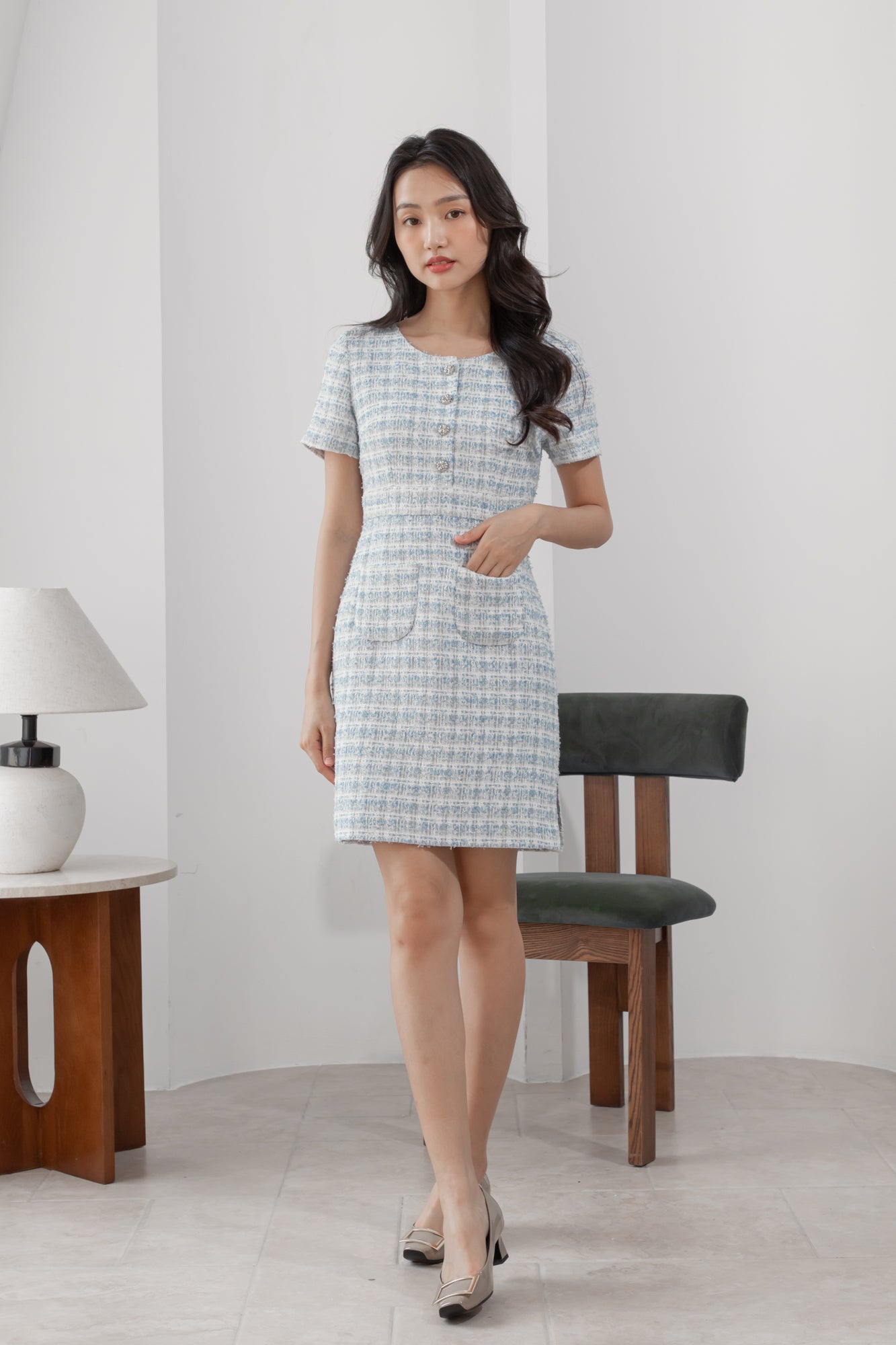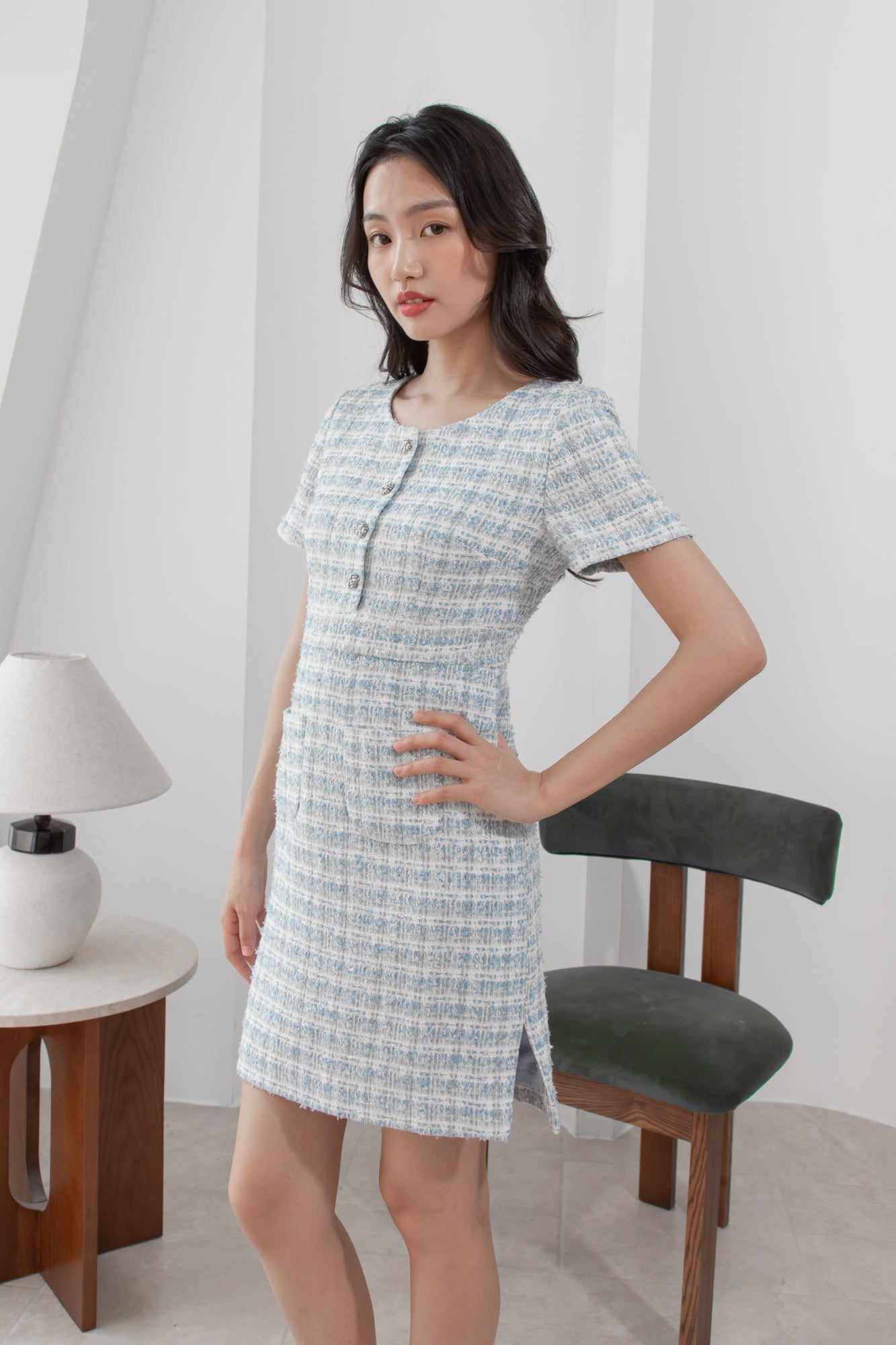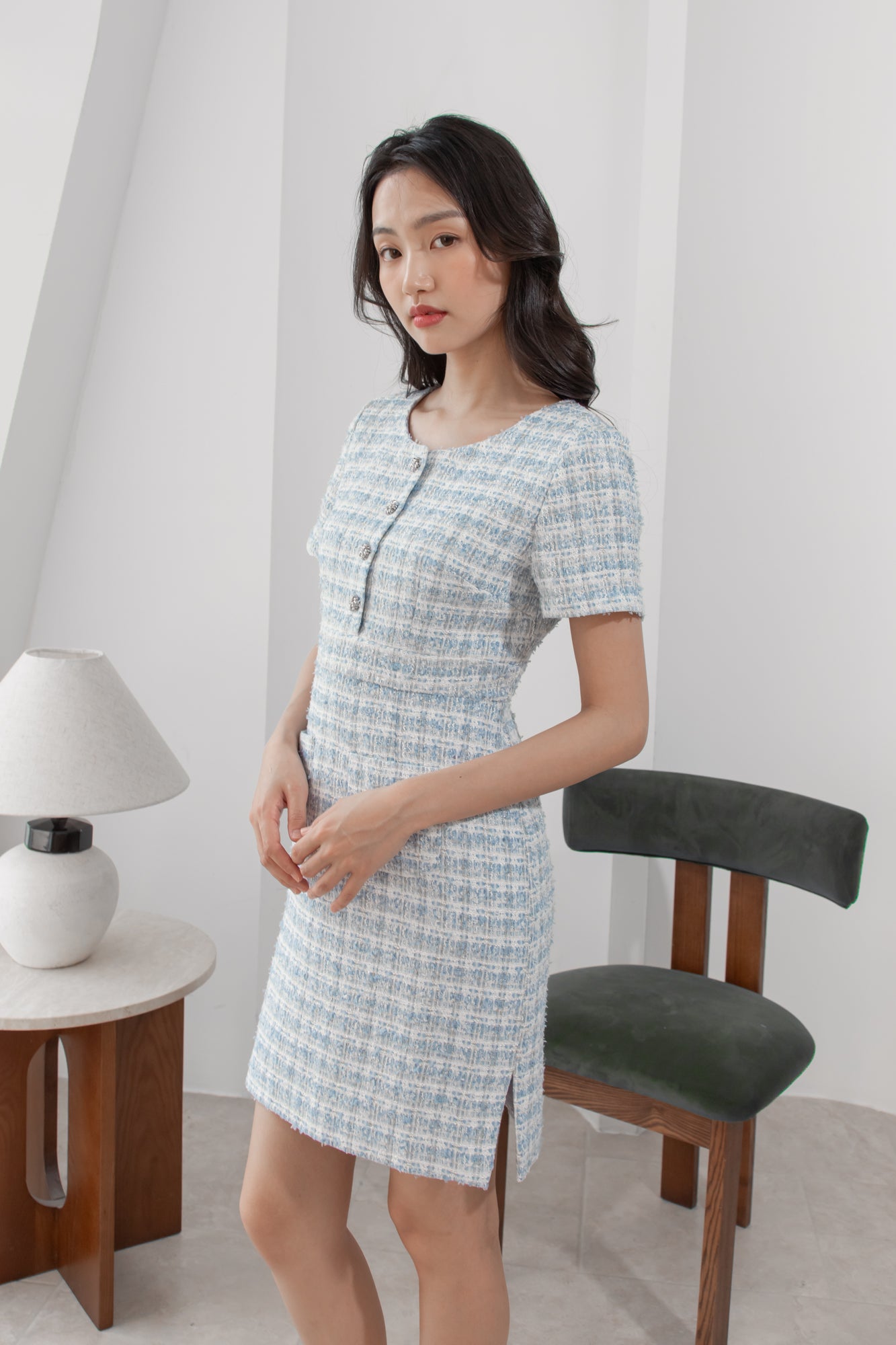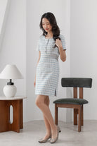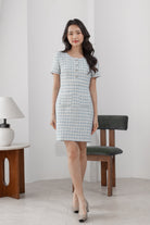 Anna blue tweed pencil dress