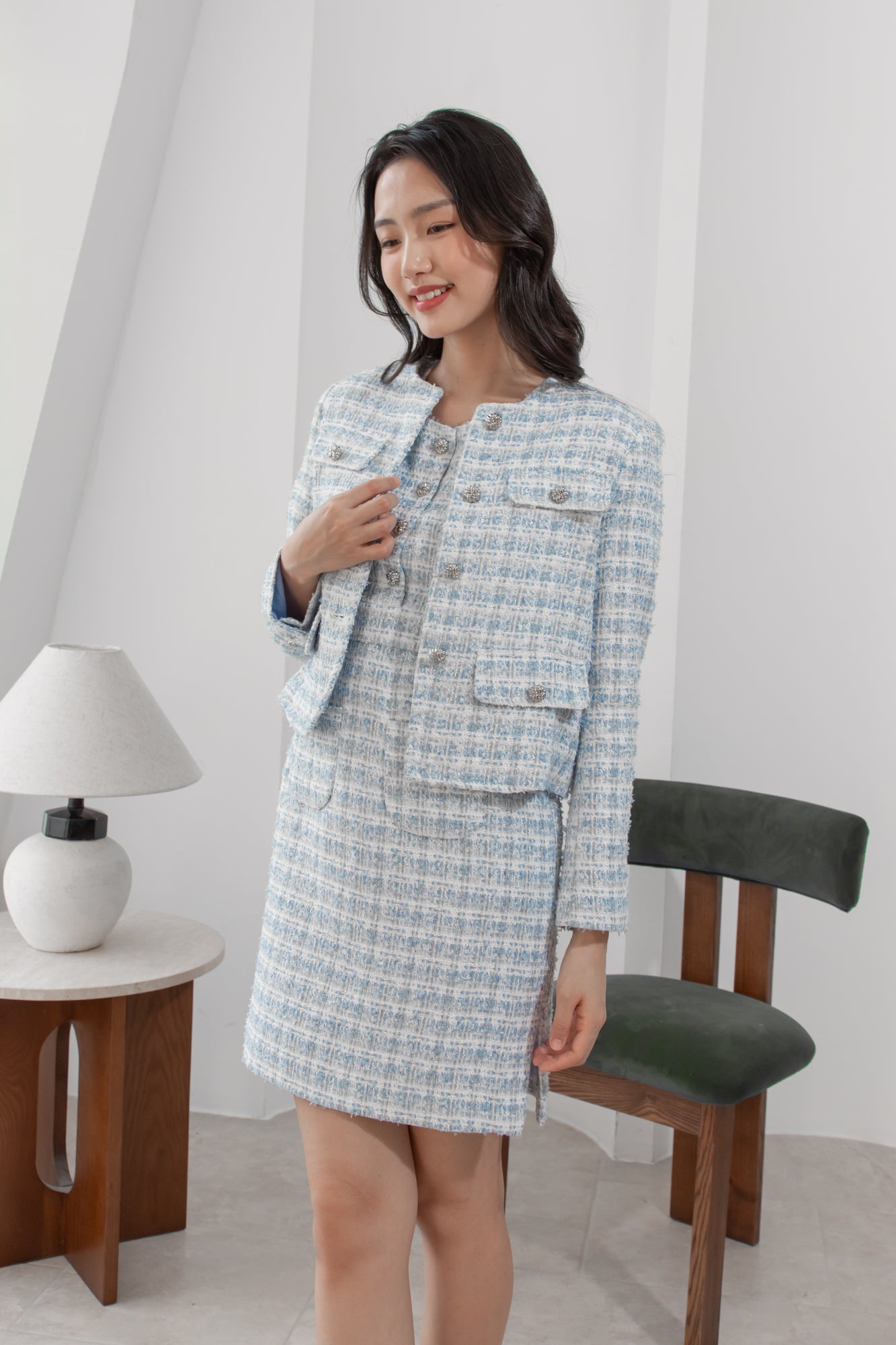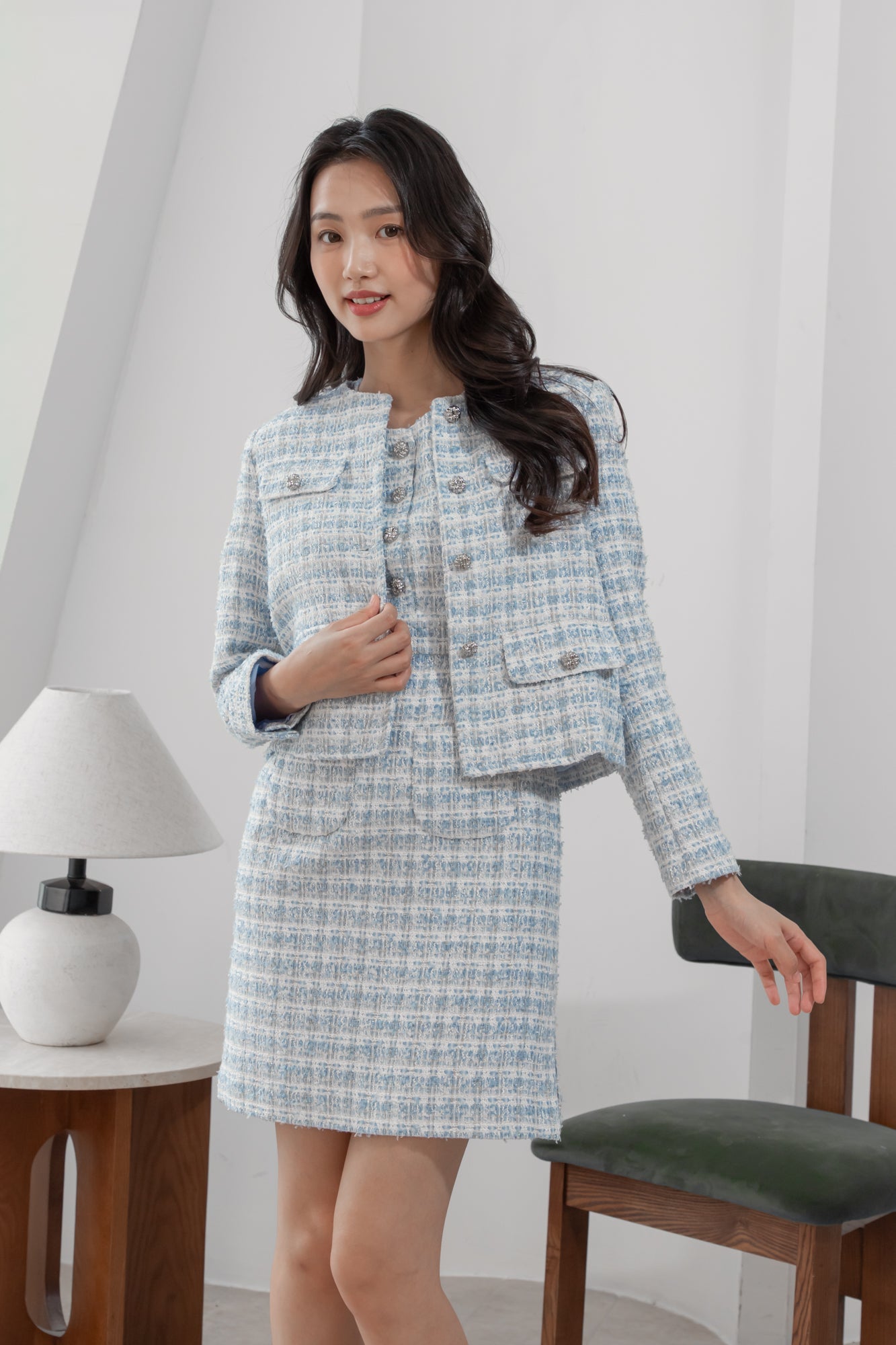 Anna flaps blue tweed jacket
