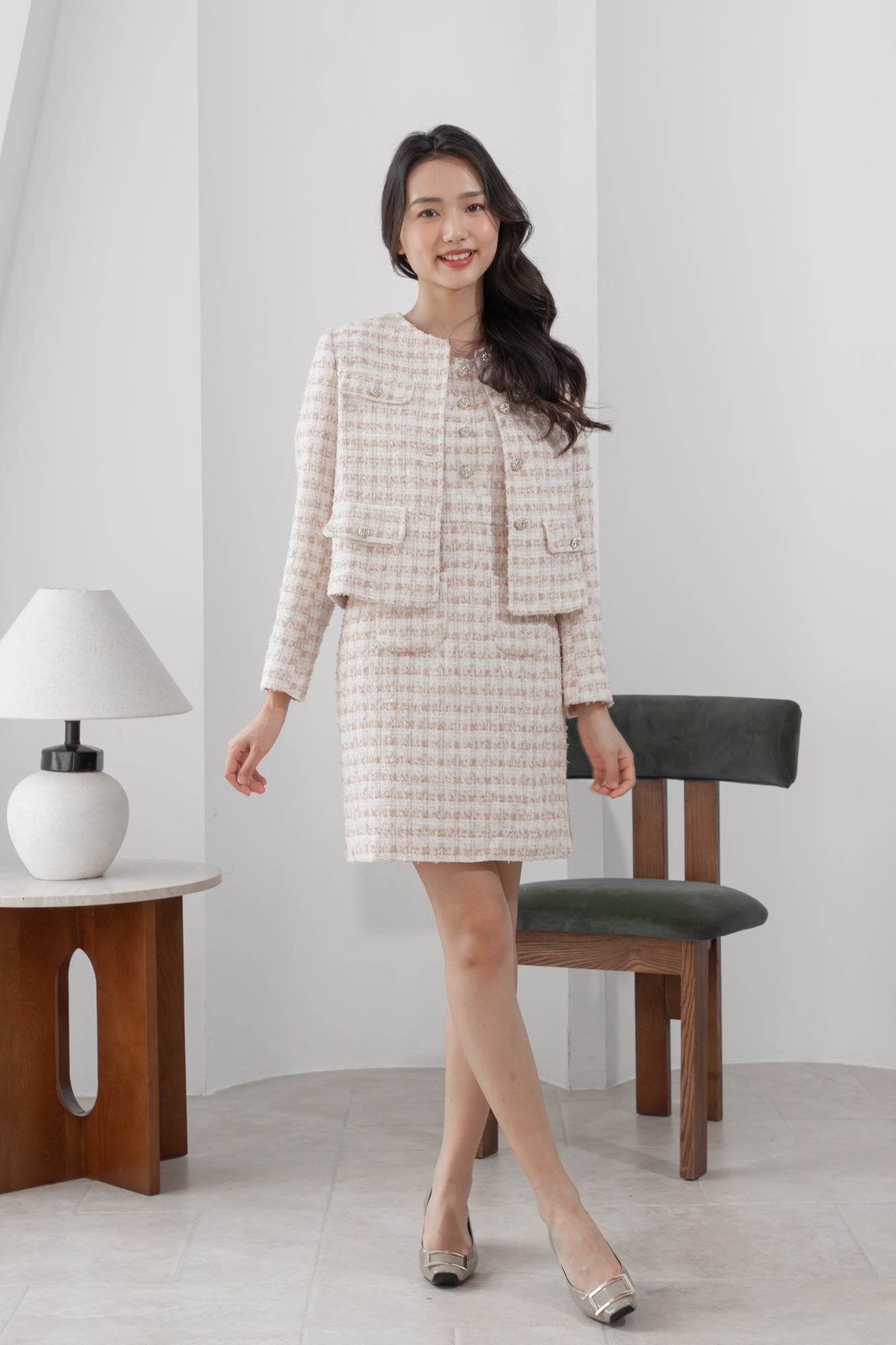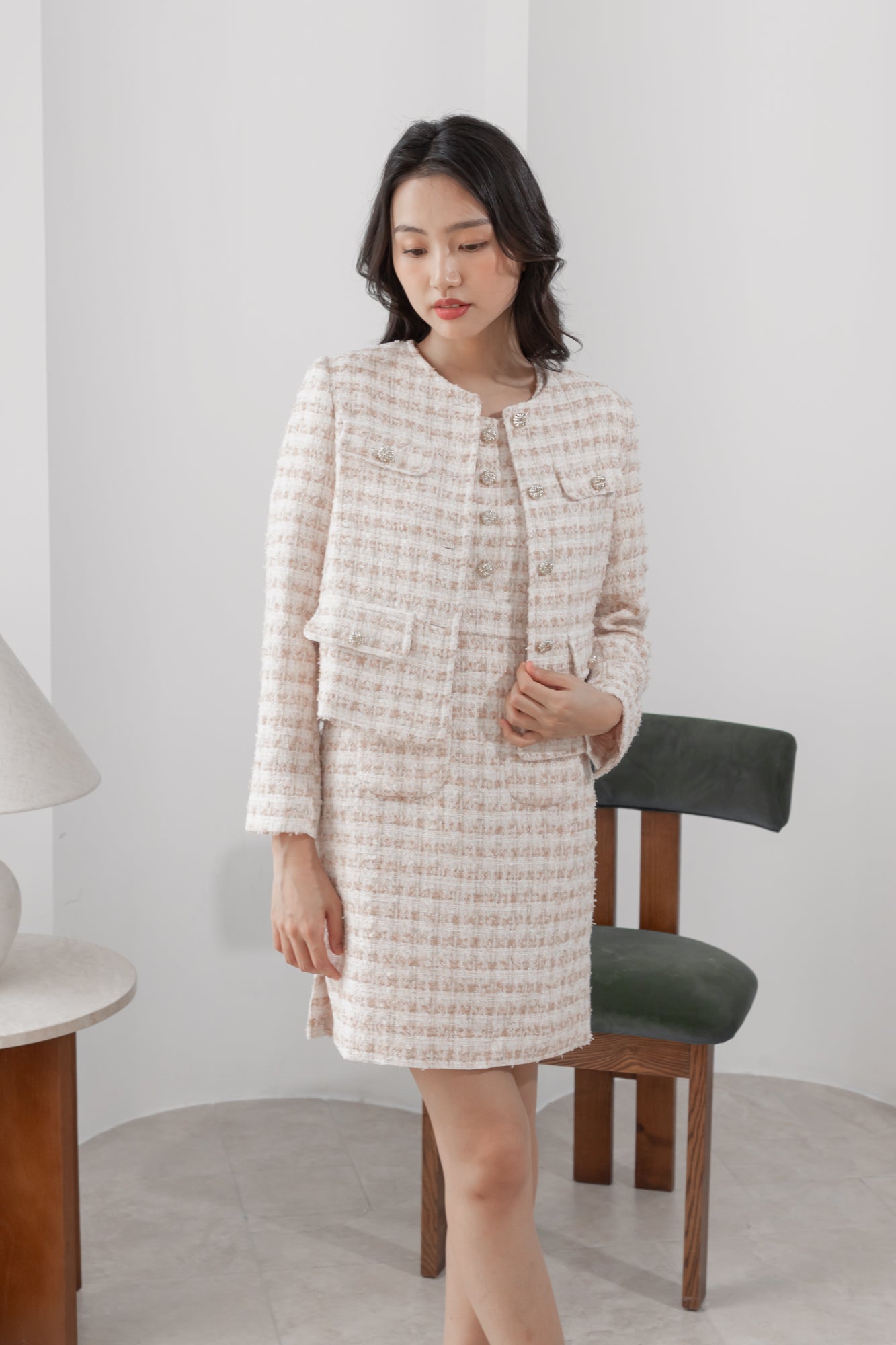 Anna flaps pink tweed jacket