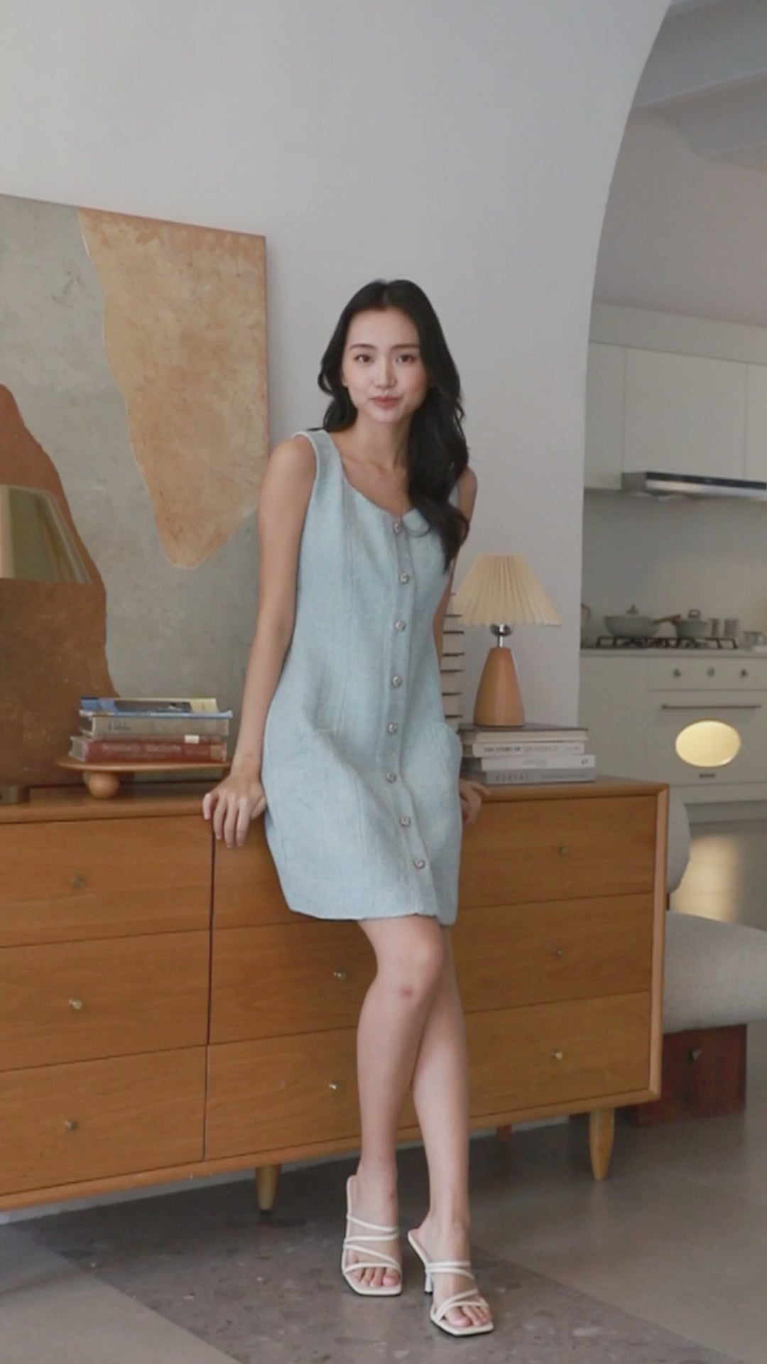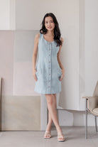 Fallon blue sleeveless tweed dress