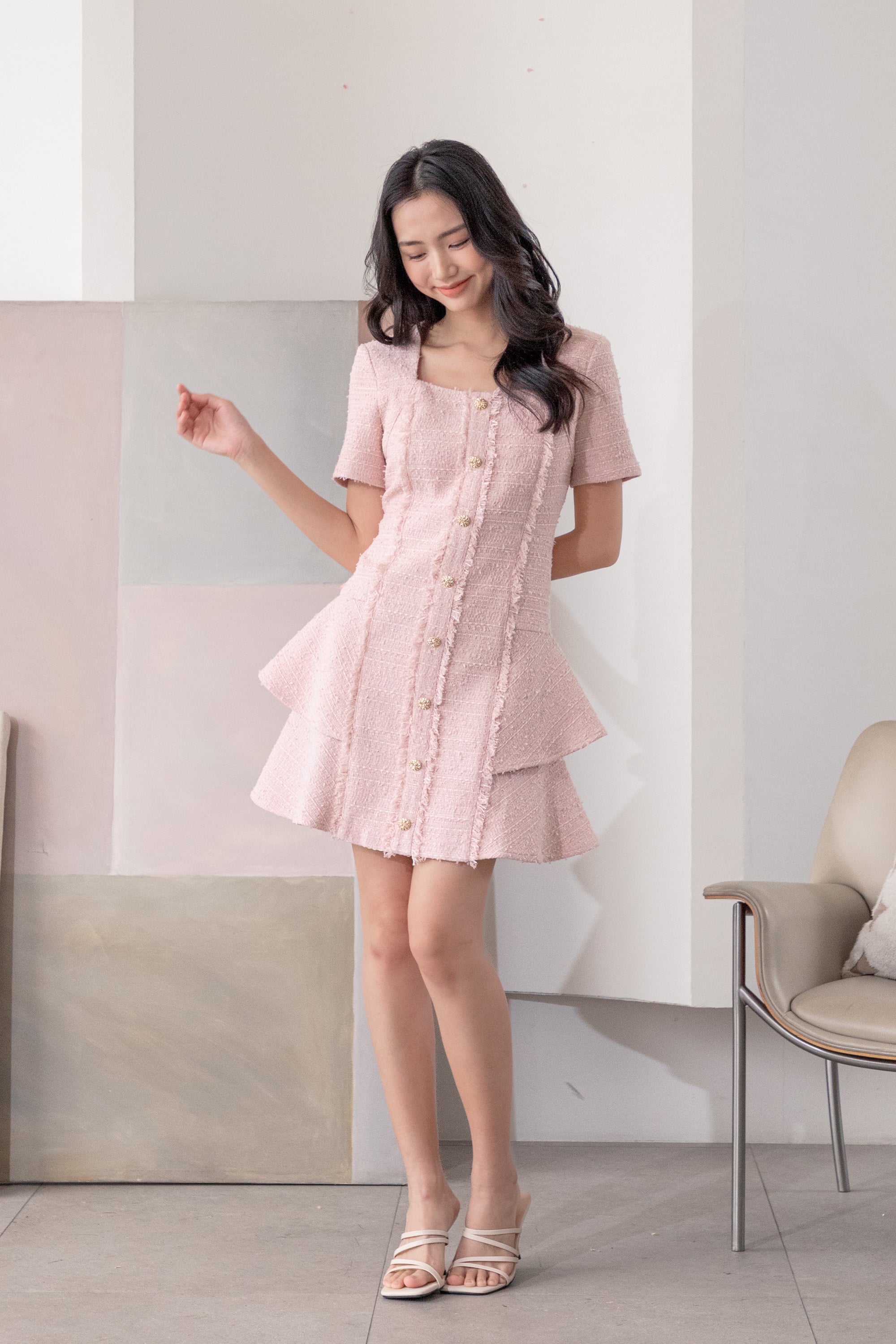 Fallon fringed side layered tweed dress