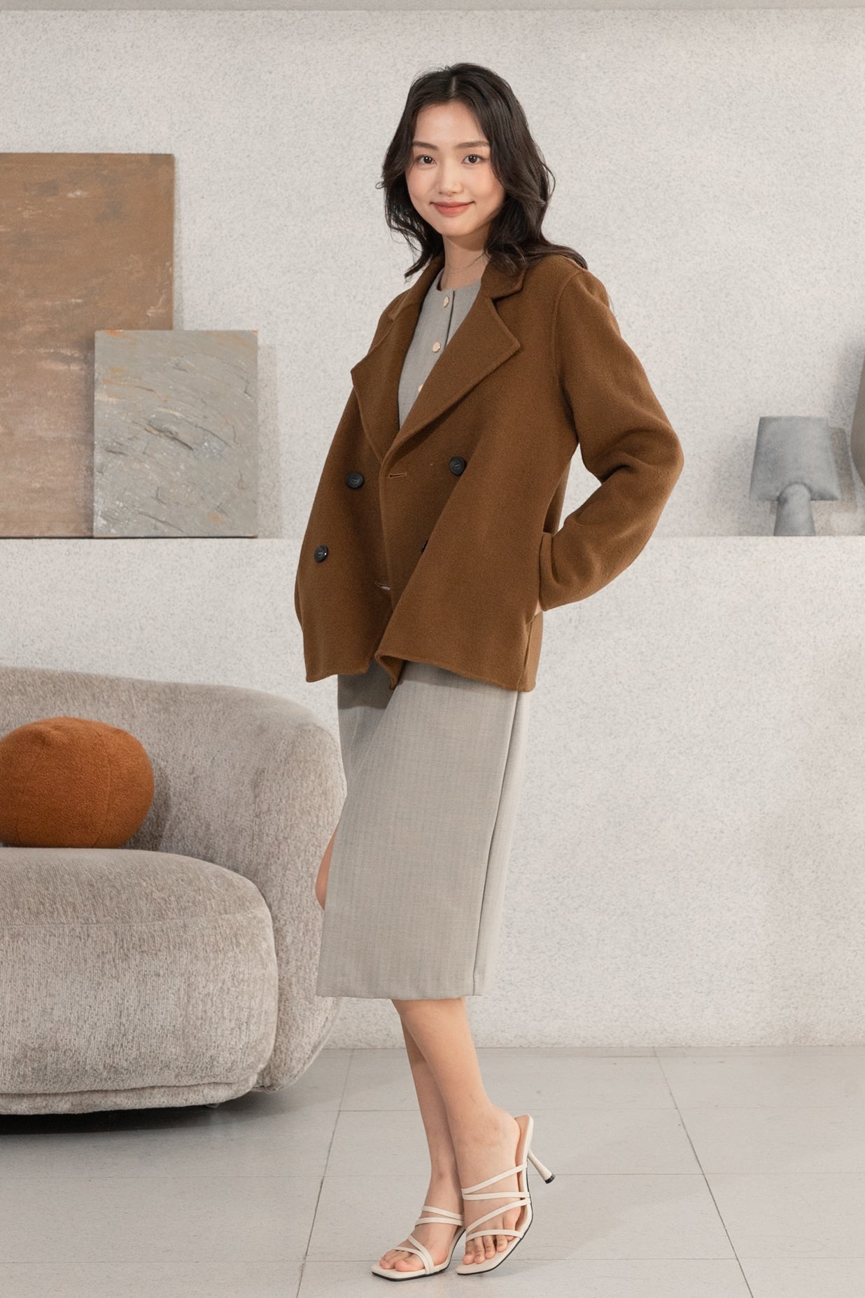 Gavin drop shoulder brown wool coat